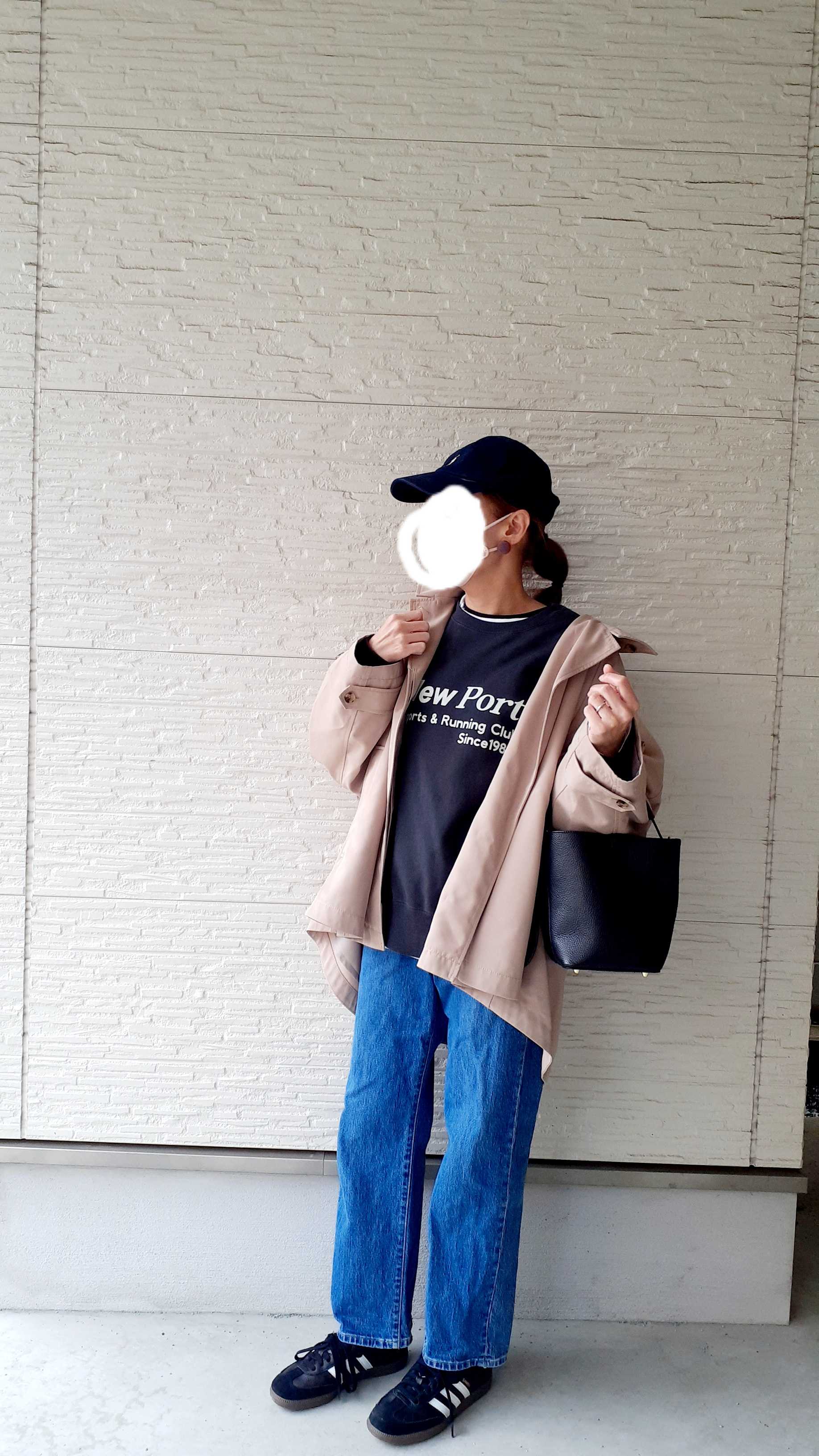 春先は、テントラインコートを着て…
