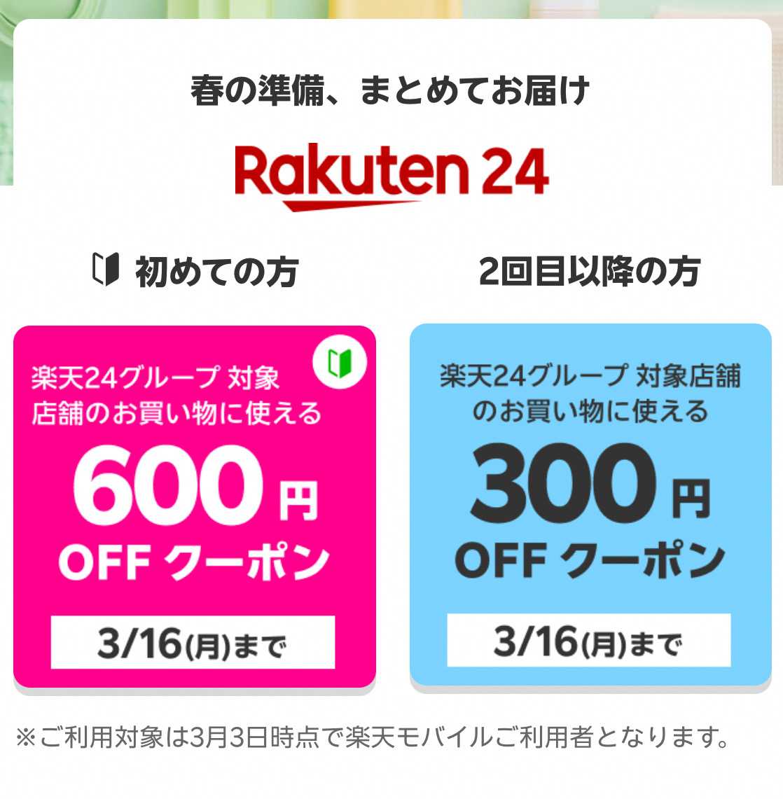 楽天モバイルユーザー限定で