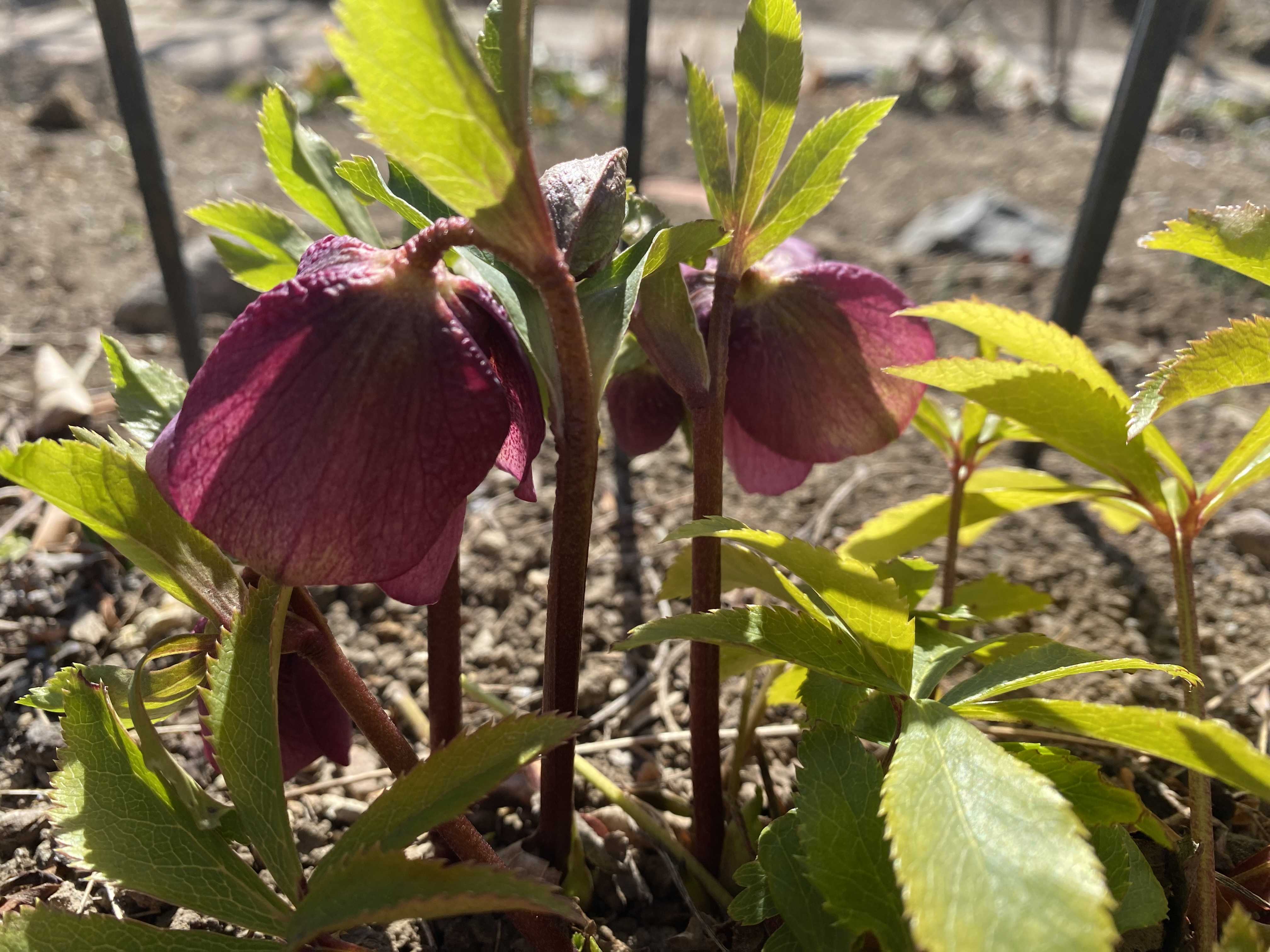 クリスマスローズが伸びてきた。協力したいけれど。