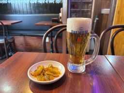 エビマカロニグラタンだ。赤ワインが安いぞ。