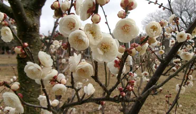 枚岡梅林のウメの花・玉英、藤牡丹枝垂