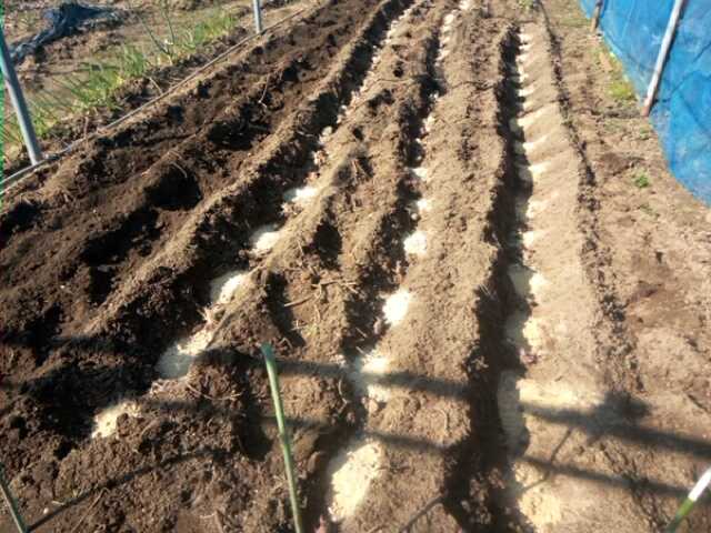 実家で借りている畑にジャガイモを植え付けしま…