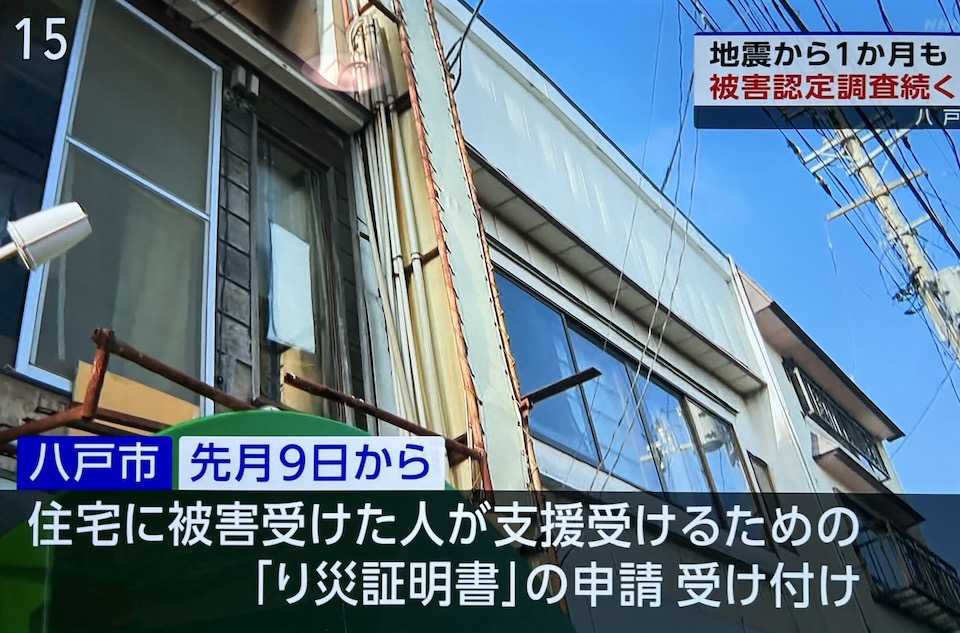 今朝の八戸は曇り☁️マイナス6℃。最高プラス1℃の予報です。積雪5センチです。震度6強の地震から昨日で1ヶ月。昨日、ひなちゃん家にも、罹災状況調査が入りました。壁のヒビが入ったところ等、担当者が写真撮影。ひなちゃんのところは「まだマシな」レベルだそうです。修繕工事はまだまだ先です。地震後1ヶ月経過した八戸を撮影するテレビカメラが、街中各所に来てましたよ。