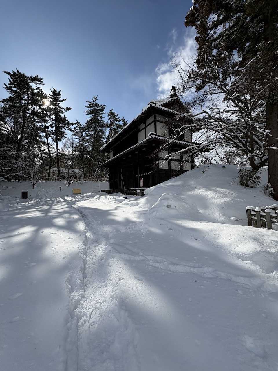 青森県弘前市駅からハイキングHirosaki Heritage〜白銀の世界に包まれて〜第3弾です弘前公園東門雪の中をサックサック冬靴必要です二の丸東門(国重要文化財)昨年秋から工事中ですね2ヵ年計画だからもうしばらくかかる門を抜けたら正面に弘前城天守が見えるね本来の場所への曳戻しは今年なんですよ下乗橋石垣工事が終了して下乗橋の上から天守が望めるのは今年夏以降です楽しみですね