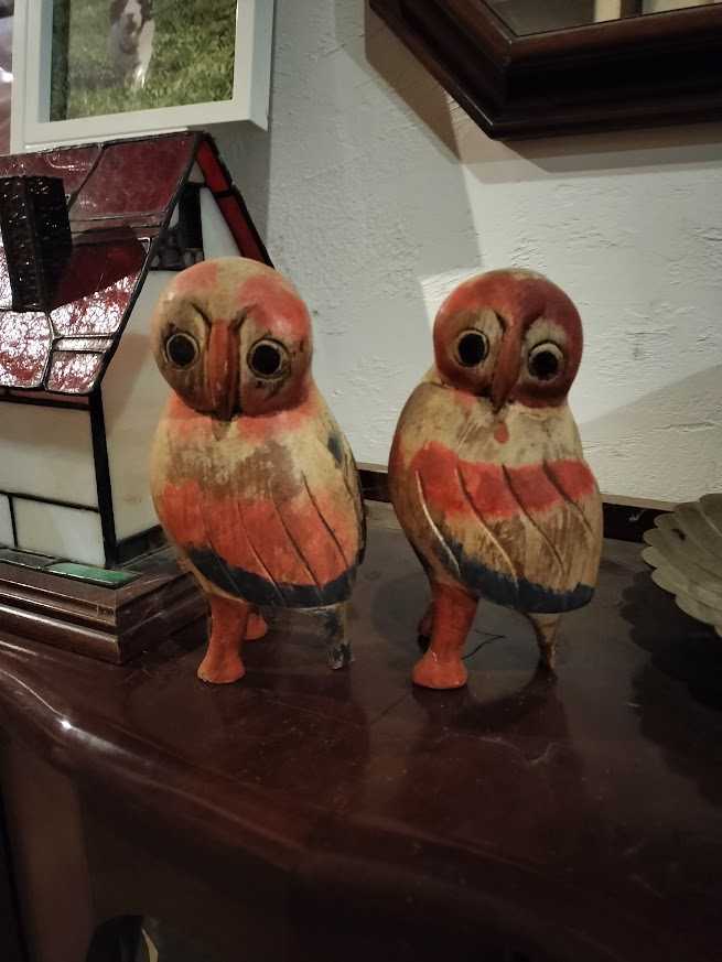 黙々と、歩く専用レーンで、25mプールの端から端まで歩いている方々が、おられる。もう、お馴染みになって帽子の色で、ああ、あの方、と分かる位になった。丸3年通うことになった。もくもく、はいいのだが、時々は、水中でも、ご挨拶の一つもしないと、悪いのだが、(だって、普通、地上で毎日すれ違う方がいれば、アタマの一つも下げるでしょう?)お名前も知らない、男性女性、なので、躊躇われる。したがいまして、あたしは、この、自主ウオーキングレーンでは、歩きたくない。泳いでいれば、そういう事は考えなくてもいいのだが、なんせ、水から上に顔が出ている。もとより、クラスに入る契約で始めたスイミングである。ウオーキングクラスももちろんあって、今年4月からは、時間割も変更になって、週に3日月水金、お昼前に固定された。ありがたい。スイミングは、水中で身体が地面と平行になり、水の中、ということもあり血管の隅々まで血液が回り、健康的だそうだ。合わせて、ウオーキングは、地面とは垂直ではあるが、最近は学問的にもとてもいい運動になることが分かってきている。はえばたてたてばあゆめうかべばおよげ との教えがあるかどうか知らんけどカナヅチである場合、まず、水に入って歩いてみて、浮かんでみて、手足を動かしてみて、潜ってみて、、と水泳の教え方の手順は決まってる。大抵の方の場合、ウオーキングは、歩けるようになると卒業していかれる。あたしも、このプールを始めた当初、そう思っていた。さあ今日は何メートル泳いだ、難病で泳いだ、じゃなくて何秒で泳いだ、とお仲間の皆さんは会話されていた。そうなるはずが、、相変わらずあたしは、水中で歩くことをやめらんない。なぜだろうか。面白いからである。(何が面白い?歩くだけなのに・・ね?)コーチがこの春から変わって、大股歩き、ってのを教えてもらう。これが、、難儀。の一つ。それに加えて、大股後ろ歩き、これも難しい。今は、水深90㎝のウオーキングプールで(25mプールとは別)レッスン前に、大股後ろ歩き、ってのをやってる。出来ませんの。足が、後ろに出ないのです。筋力の関係と思います。何十年の間に、衰えてしまっており、回復が出来ていない。もう、出来ないかも。残念ながら・・。(後方には歩けるが、大股で後ろに片足をザッ!と下げるのが出来ない)骨盤が、身体を庇ってしまうので、後方に出す脚の方に傾くのです。そうは言いながら、やるのですが・・。で本番のウオーキングクラスでは、手も使う。両手を肘から後ろに引く、そしておもむろに強く前に押し出す。肩甲骨を意識して。その時に足を(片足ね)同時に前に出す!押しながら歩くわけ。両手の押し出しは水面付近でやると、ケッサクに水しぶきが出ます。並んで複数でやってると、なんだか、大人が水遊びかよ、ってな感じ。これがキツイ。50mやり続けると、息が上がります。加えて道具も使う。バタ足の時に使うビート板。これをば、縦に持って、押しながら歩く、ってのもやります。グッと押すので、後ろ方向に進むモーメントが発生し、すこぶる歩きにくい。極めつけは、このビート板を水平に浮かせて持って、両手のリレーで身体の周りを廻しながら歩く、って、。。つまり上から見ると、歩く人の周りをビート板が水上でクルクル回転している、って感じ。わかりにくいね。更にさらに、、このビート板を前から背中に回してとって、また後ろから前に、、(襷がけ)というのを、左右で。もう、大変。などとやってると、、30分はすぐに経過。この後、30分、スイミング基礎練習があり、計60分のレッスンが終わります。オツカレサマでした。この木彫フクロウは、昔、船場の輸入雑貨店で購入したもの。今、フクロウの本を読んでいるので、思い出した。