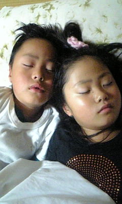 ときは仲がええんか?普段は言う事もきかんけど寝顔はやっぱかわいいわぁ
