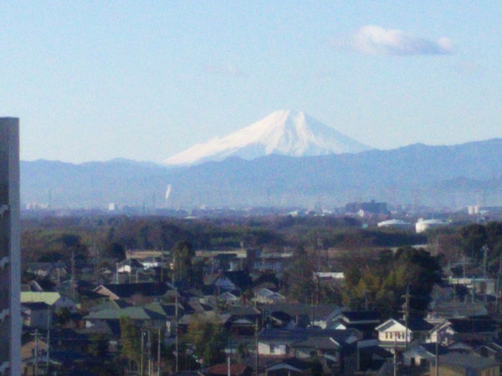 本日九時ごろの富士山です。富士山がきれいに見える時は風が強くとても寒いです。かなりの寒波が来ており雪の多い地方では十分お気を付けください。