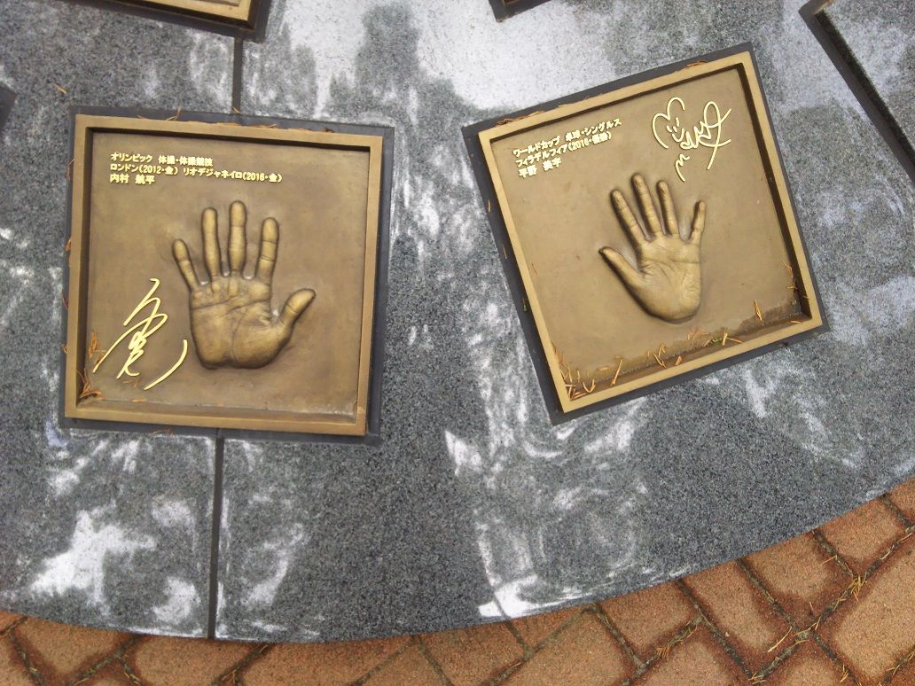 高校サッカーのメッカ、西が丘サッカー場の近くの公園でメダリストの手形を発見。写真は左が体操の内村航平選手、右が卓球のハリケーン美宇こと平野美宇選手です。写真だとわかりませんが、あらら以外と手が小さい。その他にも多くのオリンピアン、パラリンピアンの手形がありました。ここはオリンピアンが集中練習するNTCがありますが、来年には第二NTCができるようです。東京オリンピックに向けてオリンピアンとパラリンピアンの練習拠点が整備されます。再来年には東京オリンピックです。本番に向けて十分なトレーニングをしてもらいたいものです。日本チャチャチャ!!