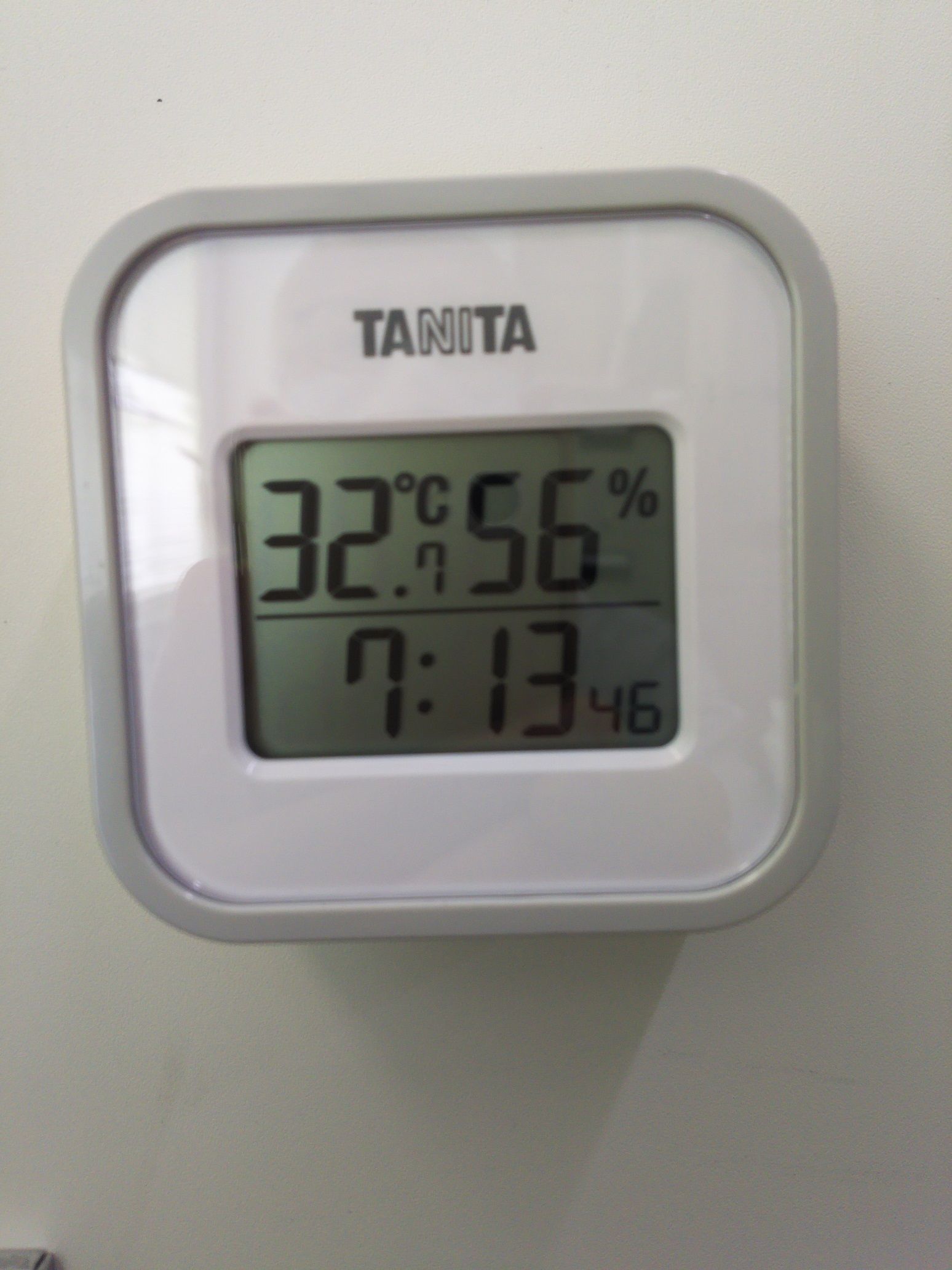 オフィスの気温は朝の7時過ぎに32.7℃ありました。エアコンなしでは危険な日です。夜も熱帯夜になるようです。皆様も体調管理に十分ご留意ください。