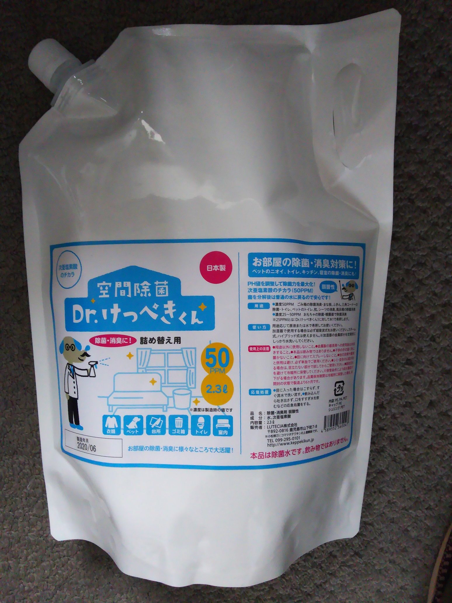 こちらは200ppmなので玄関や玄関のドアノブ、帰宅後の衣類や靴に吹きかけています。 手は洗うことが一番なので、そとからウィルスを持ちこまないように自衛しています。 早く収まればいいのですがしばらくは継続が必要な感じです。