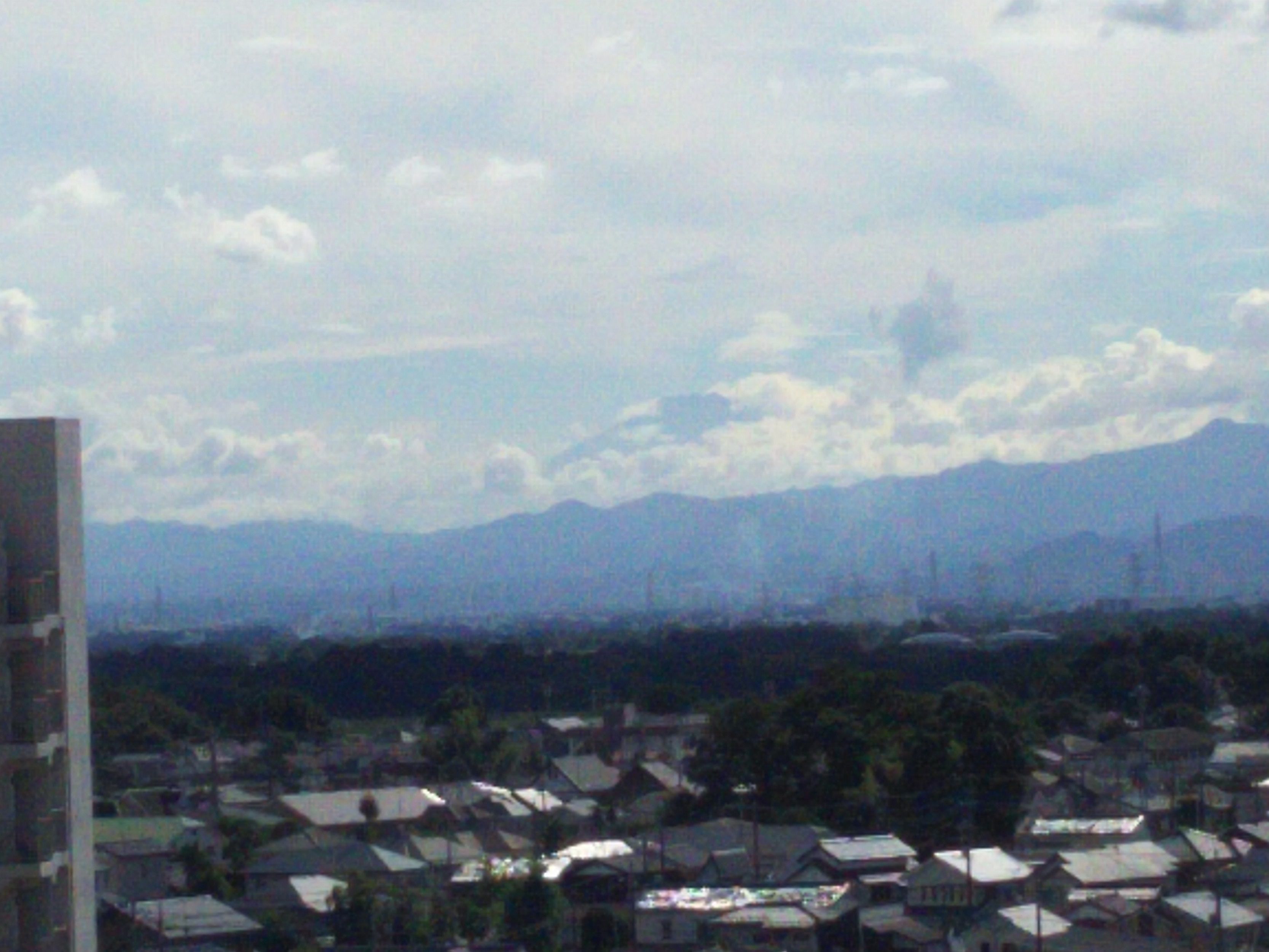 雨が降ったり晴れたり曇ったり、台風の影響で荒れた一日です。そのなかで一瞬富士山が見えました。お得な気分です。