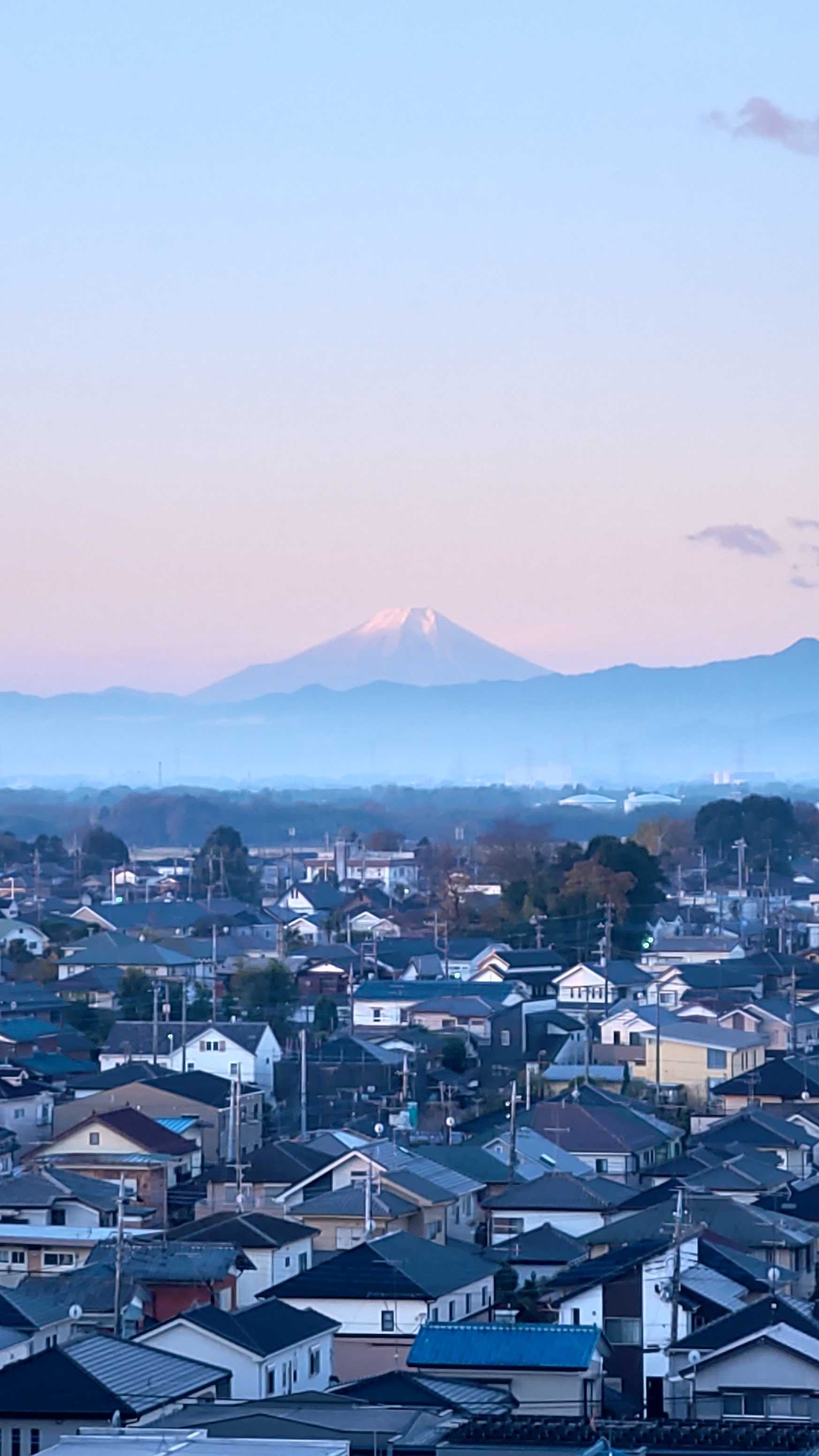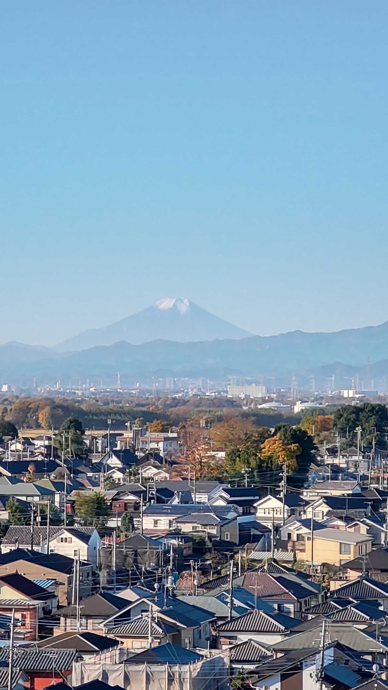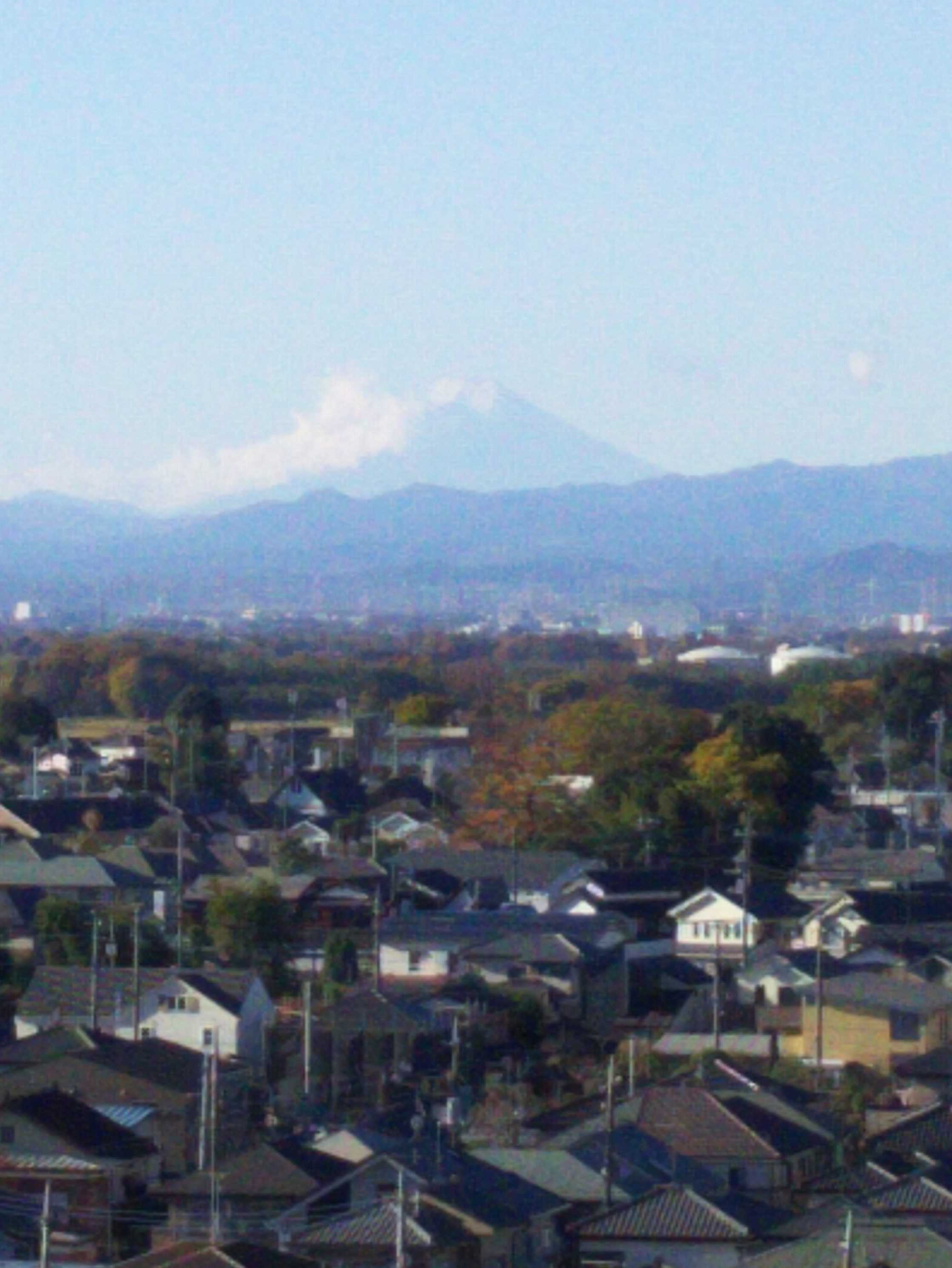 今日は暖かく秋晴れですが、北風が強いです。この様な日の富士山は南に雲ができます。雪はまだ帽子の状態です。良い週末をお迎えください。