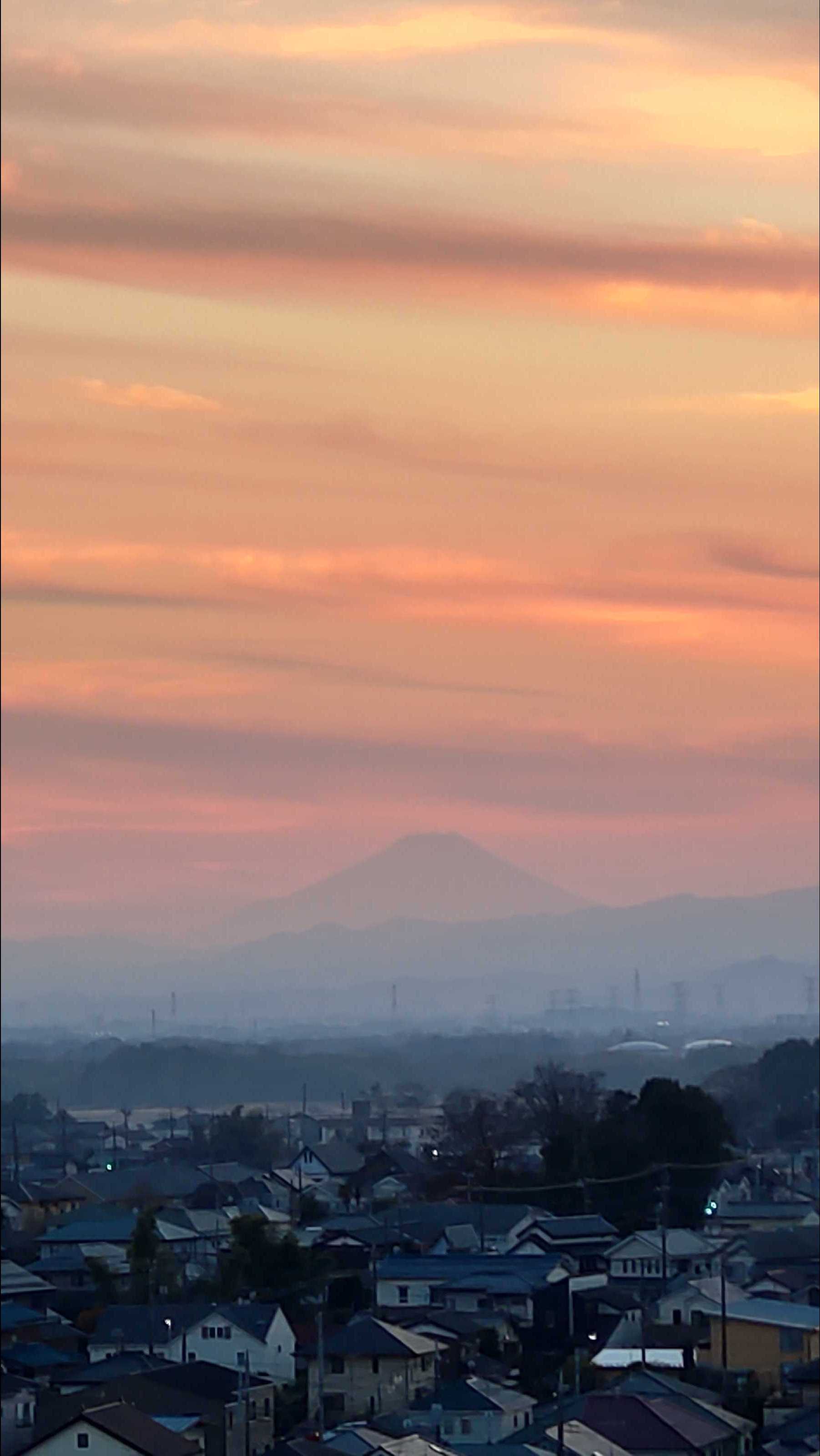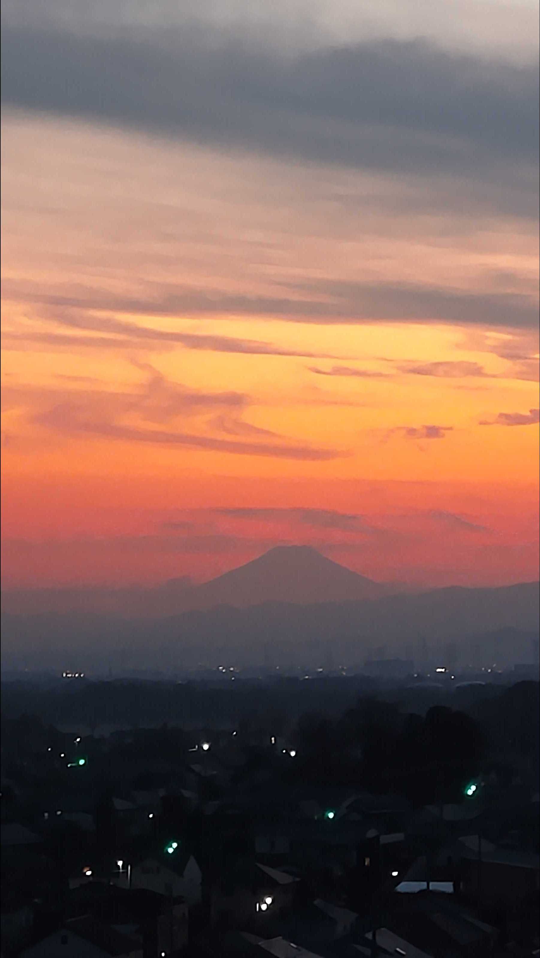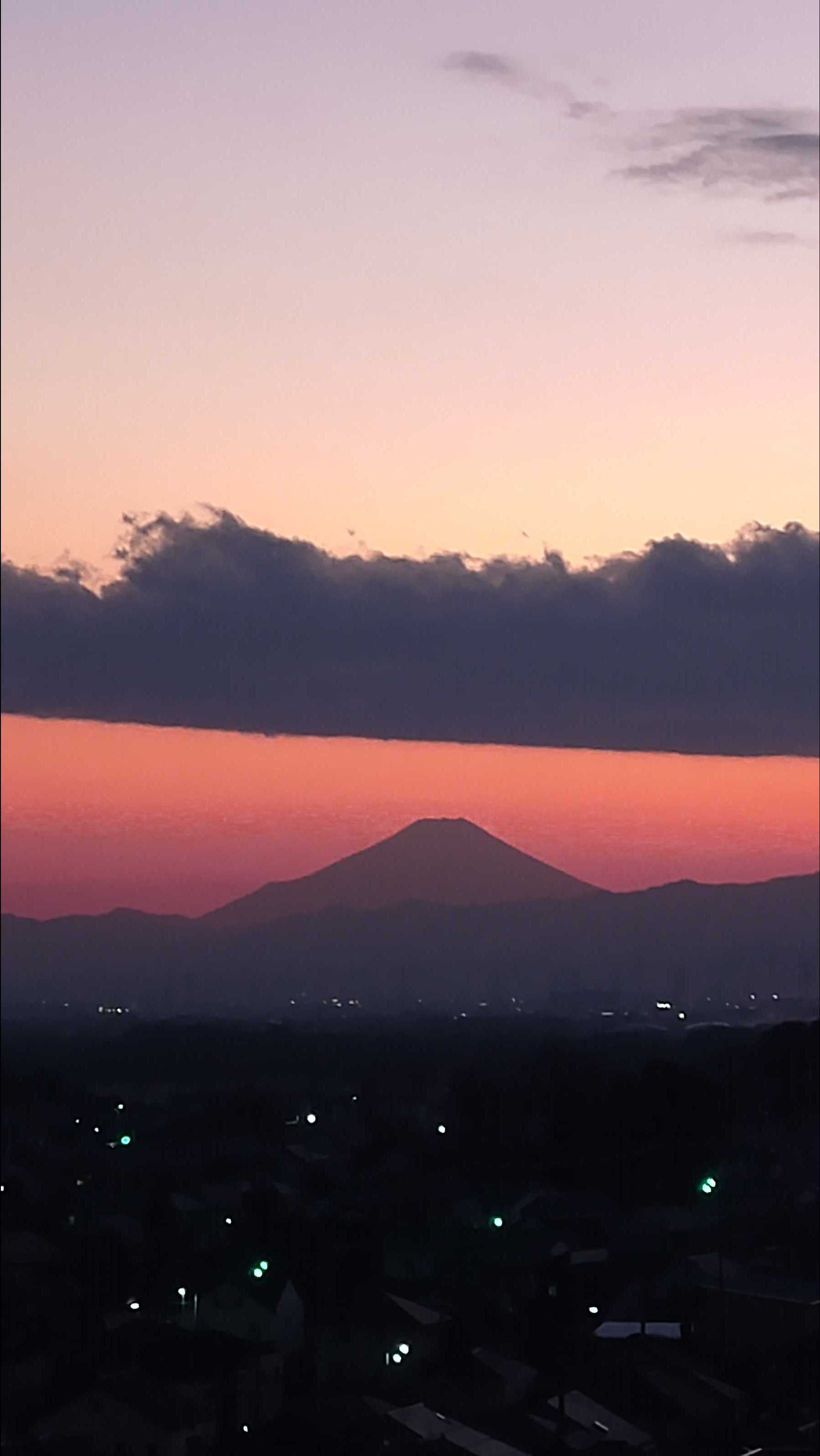 雲が出ていますが、手前の雲で、夕暮れの🗻は綺麗に見えました。