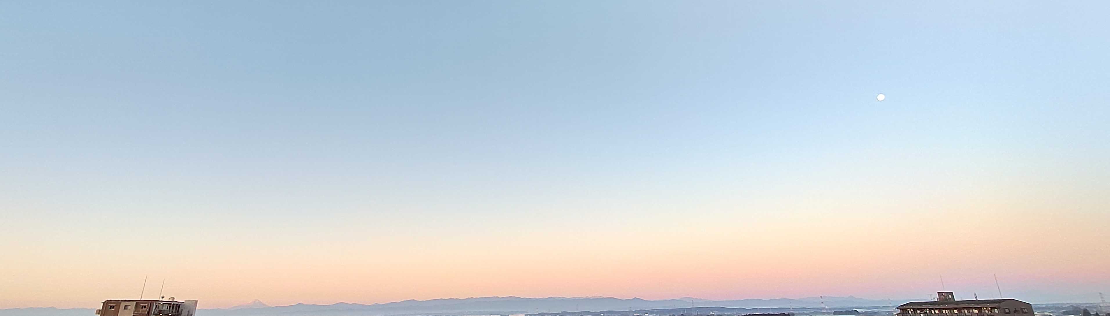 富士山を撮ってたら北西に沈む🌕も撮れました。雲がないと榛名山が見える方向です。