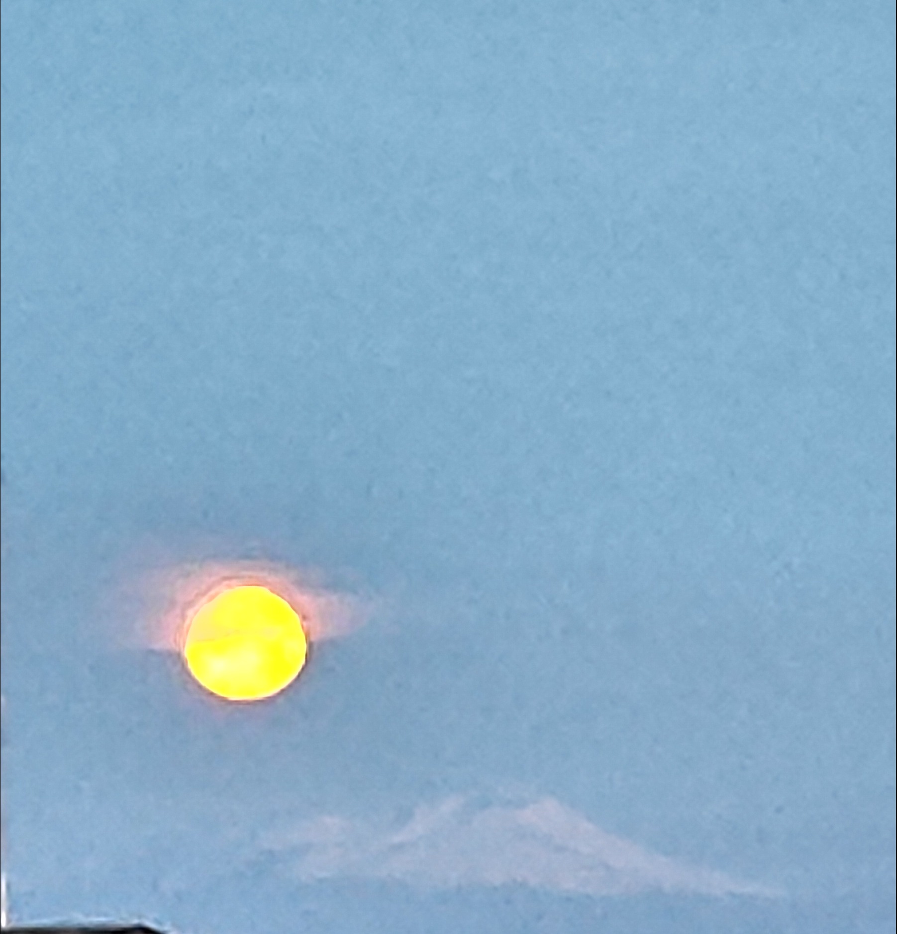 おはようございます。今朝の気温は5℃前後と冷え込みは緩み、風も微風です。日中は17℃前後と4月の陽気になりそうです。何やら三寒四温が始まったようで、火曜日から寒の戻りがあるようです。気温の変化は体調に影響を及ぼすので服装を含めご注意ください。今朝起きたところ、🌕はぼんやり見えましたが、今は雲に隠れています。🗻も雲に隠れています。残念ながら日の出の時間になっても雲が厚く、日の出の時間にはアップできる写真はありませんでした<(_ _)>そうこうしているうちに急速に天気が回復し、気温も上がってきました。かすかではありますが🗻が見えています。8:389:10