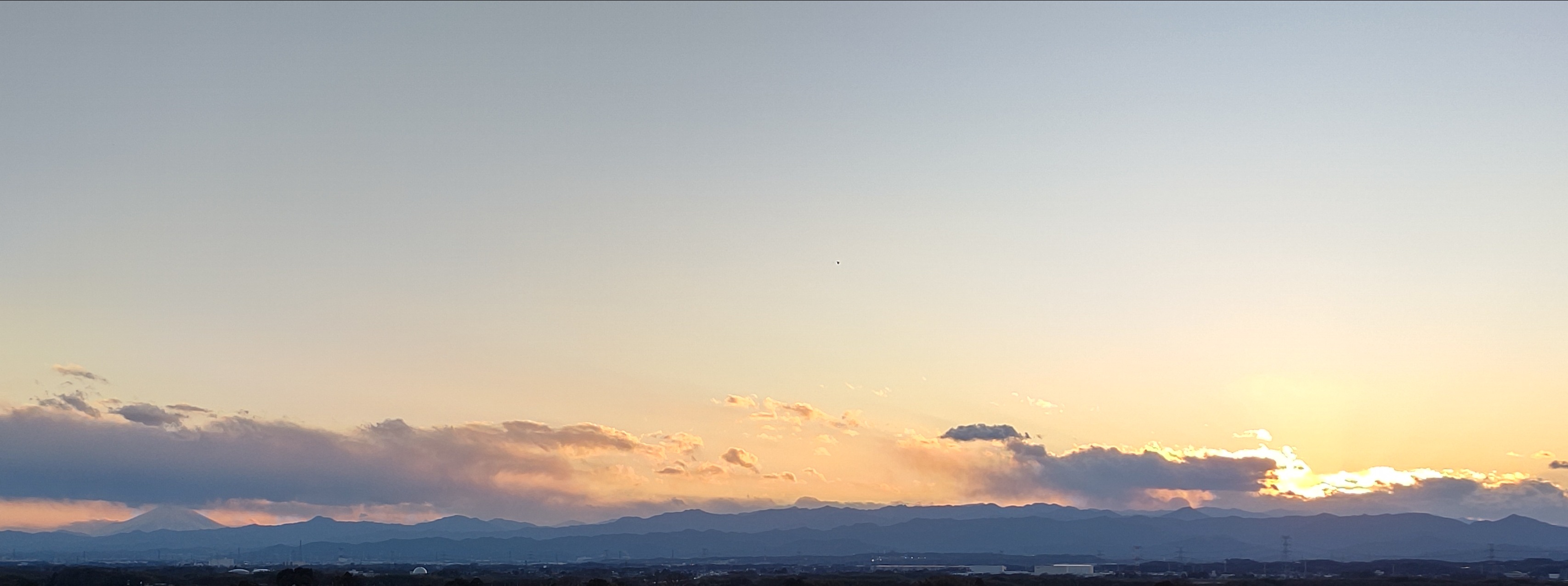 今日は穏やかな一日でした。気温が高いと🗻は見えにくいのですが、風があるので見えています。17:29 日の入り17:2817:55