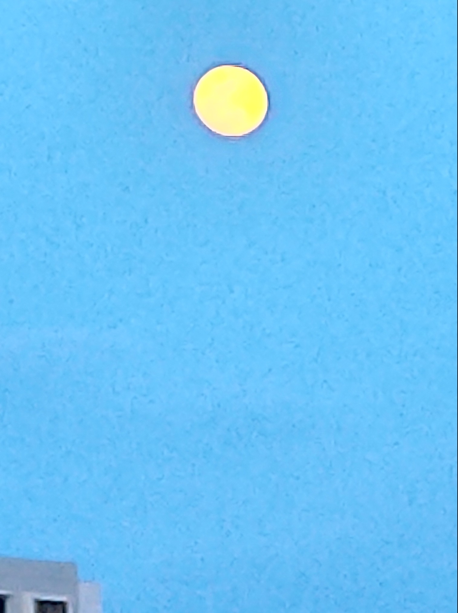 日中は暖かったのですが日が落ちると寒くなってきましたが、🌕が見えています。18:20