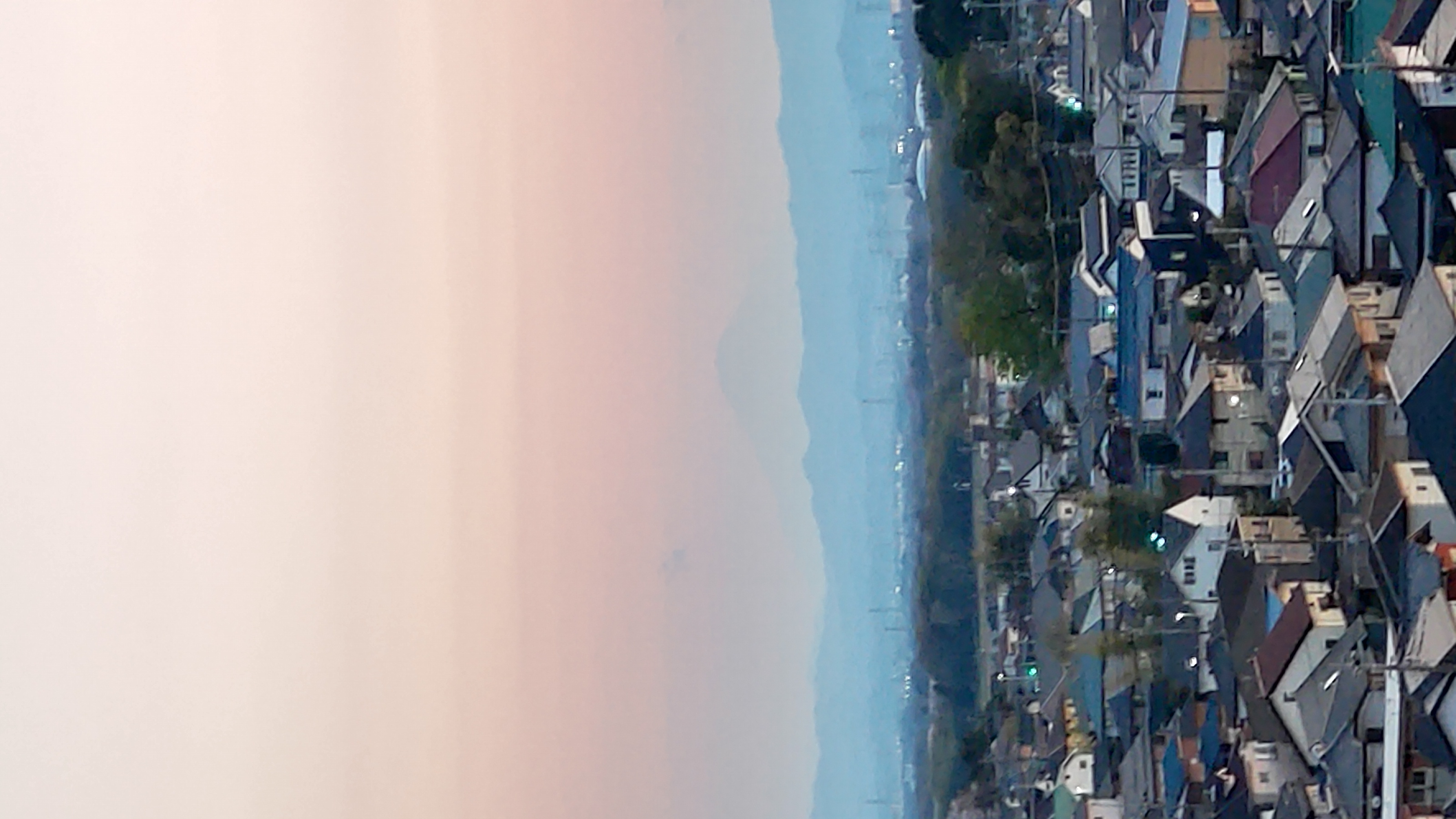夕暮れになりうっすらと🗻が見えてきました。18:14