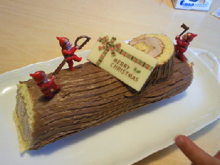 イチヒメのクラスメート7人が来てクリスマスパーティ。ケーキはブッシュ・ド・ノエルを作りました。粉砂糖ふるのを忘れたし、写真うつりもイマイチですが(ニタロウの指が特別出演してるし)、味はなかなか良かったようで、好評でした。今回はロール生地が上手くできた!コツは焼き上がった生地を金網に乗せたらすぐにポリ袋に入れて、蒸らすように冷ますこと。そうするとふんわりしっとりの食感になるようです。それにしても、女子8人って何ともまぁうるさい・・いや、にぎやかですわ***我が家にも昨夜サンタさんが来てくれました。12時過ぎに突然イチヒメが目を覚ましたり、興奮気味の彼女はそれからなかなか寝付かなかったりと、サンタさんもプレゼントを置くタイミングに苦労したことでしょう今朝は5時20分に目を覚まして、プレゼントを開けていた2人でした。イチヒメにはポケモンテプラ、ニタロウにはカーズのボードゲーム。イチヒメはお願いしていたものがズバリ届きましたが、特に希望のなかったニタロウは、最初はそれなりに喜んだものの、お姉ちゃんのプレゼントが徐々にうらやましくなったらしく・・。横取りせんばかりの勢いで使おうとして、お姉ちゃんともめた挙げ句、自分のプレゼントを「こんなものいらない」と投げつけたりクリスマスの朝はニタロウの大泣きにうんざりした我が家でしたま、しばらくしたら落ち着いてゲームでも遊びだしましたけどね。