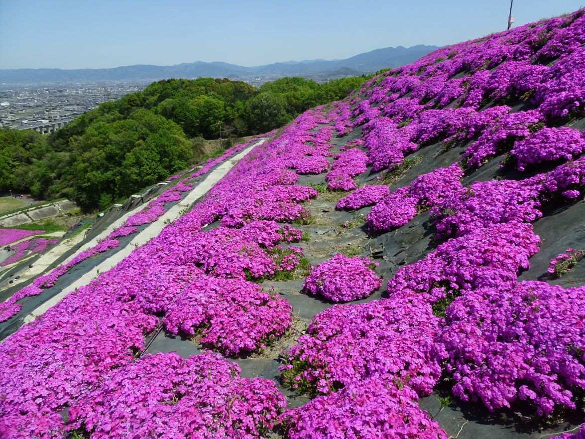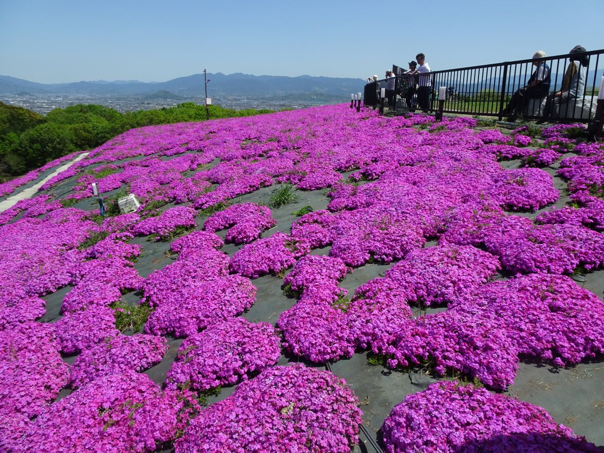 展望所から奈良盆地が一望出来ます。遥か彼方に霞んでいる山並みは