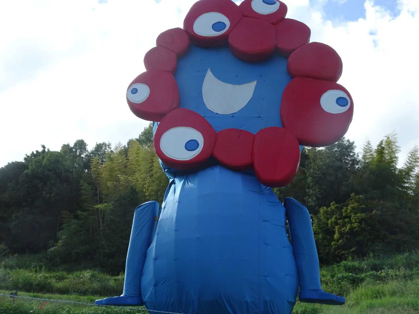 大阪万博のシンボルキャラ、「ミャクミャク」が、明日香村・稲渕の棚田に引っ越ししてきた???(前回のブログの続きです)9月23日(秋分の日)、リュウちゃん独りで歩いて明日香村の彼岸花を散策して来ましたが、この時は左足の不調で、「石舞台古墳」までしか行くことが出来ませんでした。「石舞台古墳」から30分程登った所にある「稲渕の棚田」の「案山子ロード」,行けなかったことに「悔い」が残った。なので、一週間後の9月30日、女房殿の運転する車の助手席に乗って「稲渕の棚田」にお出掛けしたのです。午前11時、家を出発、約30分で昼食場所の「餃子の王将・橿原店」に到着、リュウちゃんは定番のレバニラ炒めと餃子+生ビール(2瓶)を注文し昼食、プファ~、ビールが旨い!本日は天候絶佳、面白い案山子と彼岸花のコラボを観ることが出来るかな?(餃子の王将・橿原店)正午過ぎ、「餃子の王将・橿原店」を出発、店の近くにある「藤原宮跡」に立ち寄りました。おお!「藤原宮跡」の彼岸花、ちょうど「見頃」だ!午後1時、「稲渕の棚田」に到着、棚田の入口の「巨木のモニュメント」の下に、2輪だけ「白い彼岸花」が咲いていた!小滝のある飛鳥川の橋の下を潜って「稲渕案山子ロード」に入ります。今年の「稲渕案山子ロード」案の定、大阪万博のシンボルキャラ、「ミャクミャク」がいっぱいだ!恒例の「ジャンボ案山子」も「ミャクミャク」なのだ!「大阪万博」は、10月13日に終了したが、稲渕の棚田では、11月上旬まで「ミャクミャク」が展示される。「万博ロス」の方は、「稲渕の棚田」に行けば「ミャクミャク」に逢えるのだ!?以下、目に付いた今年の案山子を幾つかアップします。<天照(アマテラス)>伊勢神宮(内宮)の主祭神・アマテラスは奈良に降臨したのだ!???<鉄腕アトム><パンダ、カムバック><握手をしましょう>ここにもミャクミャクが居た!<母と子の願い><世界へこんにちは>今年の案山子の中で、一番華やかな案山子です。今年一番の美少女案山子だ!<キトラ天文図と四神DE世界遺産へGO>今年の明日香村村長賞(最優秀賞)を受賞した案山子です。キトラ古墳は来年、ユネスコの世界文化遺産に選定される予定の「飛鳥・藤原の宮都」の「文化財」の一つなのです。尚。、「キトラ古墳」は稲渕の棚田から車で10分の場所に在るのです。意図は判るが、ちょっとグロテスクな案山子だ。<案山子ロードの終着点の彼岸花>「稲渕案山子ロード」は、入口から約500m程続いています。案山子ロードの終着点は、赤い彼岸花に加え、白い彼岸花と黄色い彼岸花(鍾馗水仙)が一挙に観られる名所、今年も3色の彼岸花を観ることが出来た!