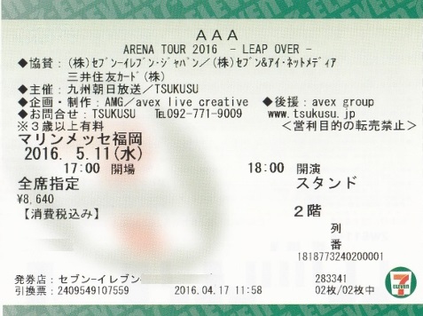 01.I'll be there ステージ上部から鳥籠みたいなの(←失礼)に入った7人が降りてきて! てか、1曲目がアイルさんで結構予想外で驚いたな。 そして、ラップの時、日高君だけが鳥籠の中で歌っていたのが、個人的に結構ツボだったww 衣装は、「AAA」「LEAP OVER」が印字されてる生地だったけど、 結構シックな感じのスーツでかっこよかった! 宇野ちゃんはセクシーだったけど!