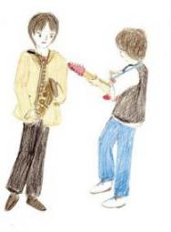 分からなかった部分および敬称略(2011.3.4 atビルボード大阪 1st set)SEでのオープニング →「Funky Monsters」フルートを手に「ロバートの肖像」本田雅人 "どうもこんばんは~"久々の大阪 + ビルボードでの本田バンドは初。たいていはアルバムリリースしてライブ、だが今回は急に決まった。ただ今後は、アルバムリリースなどと関係なく色々な所にライブに行きたい。曲も色んなアルバムから―と言いつつ最新作から2曲。→メンバー紹介→EWIを手に「君はエスパー」アルトサックスを手に「オレンジ」→曲紹介"皆さんには休憩していただいて… 22歳の白井晧人君と""リコーダーを使って"―サックスよりももっと先にリコーダーを吹いていた。たいてい小学校3年生で手にするリコーダーだが、実は小2の途中から始めた。3年のときには他の人より上手くなっており、褒められた。それが快感で今の職業に "自分の原点"「Forget Me Not」梶原順、則竹裕之、櫻井哲夫戻る "いいですかぁ?"→"グッと大人しかったので、グッと元気に"F1レーサーのアイルトン・セナが亡くなったとき追悼アルバムのために書いたが落選、後に自分のアルバムに「Condolence」→「放課後は日曜日」「(?)」→メンバー紹介【アンコール】"前に名古屋でやって…今日で終わり"「Joy」私にとっては2度目の本田バンド。(バースデーライブを除く)大阪では5人中3人が、昨年11月のバースデーライブと同じメンバーでした。 (2010.11.21参照)去年のバースデーでは"親子バンド"なんて言っておりましたが、今回初めて聴いた「Forget Me Not」では親子デュオでした―あるいは、先生と生徒と言うほうが合っていそうな雰囲気!?(…失礼)ライブでの「Joy」といえば未だに「What is Fusion」の印象が強く、昨年のバースデーで初めて聴いた、ベースソロと間奏の部分が変わった新しいバージョンはまだなじみません。(2009.6.12参照)ただこのバージョンを実際にライブで聴いたことがないのもまた事実。1年前に初めて行った本田バンドのライブでは、この形で演奏していたと思いますが。(2010.3.8参照)とはいえ―元々2003年夏(だったか)ジャヴァンのオフィシャルサイトで櫻井さんのお名前を見かけたとき、比較的最近に彼と共演した日本人がいるのか―と気になっていました。(2010.5.31および2008.4.13参照)それで本田バンドへの櫻井さんの参加を(青木智仁さんのステージを観ることは叶わなくてもこの人なら大歓迎―と)実は密かに楽しみにしておりました。「What is Fusion」は大切に聴きつつ、今後新しいバージョンも自分の中で定着していくかも。本田さんといえば、昨年のSaltish Nightに参加されていましたね。例のごとく、年末だし東京だしでラジオ放送までおあずけでしたが。本田さんのステージの曲からは、てっきり最新アルバムでSALTさんとのデュオだった「Your Birthday」がかかるかと思いきや、FOUR of a KINDのメロディー隊のお二人だけのデュオで「Upward Mobility」が。面白かったですが、もし生で聴けていたら新しい形として楽しめていたでしょうか、それとも…佐藤竹善さん・大橋卓弥さん・本田さん・SALTさんの「ホーム」も良かったですし―また竹善さんと本田さんの共演が実現してほしいと思います。ひょっとしたら、イラストからどの位置で観ていたか判ってしまうかも。書きやすいアングルにいた人を動きの少ない曲の間に狙ってクロッキーした段階で絵の大きさに大分差が出てしまい、帰ってから清書したとき調整したものの、やっぱり大きさに違いが出てしまいました―楽器ばかりだとイラストのネタが尽きるもので―すみません。