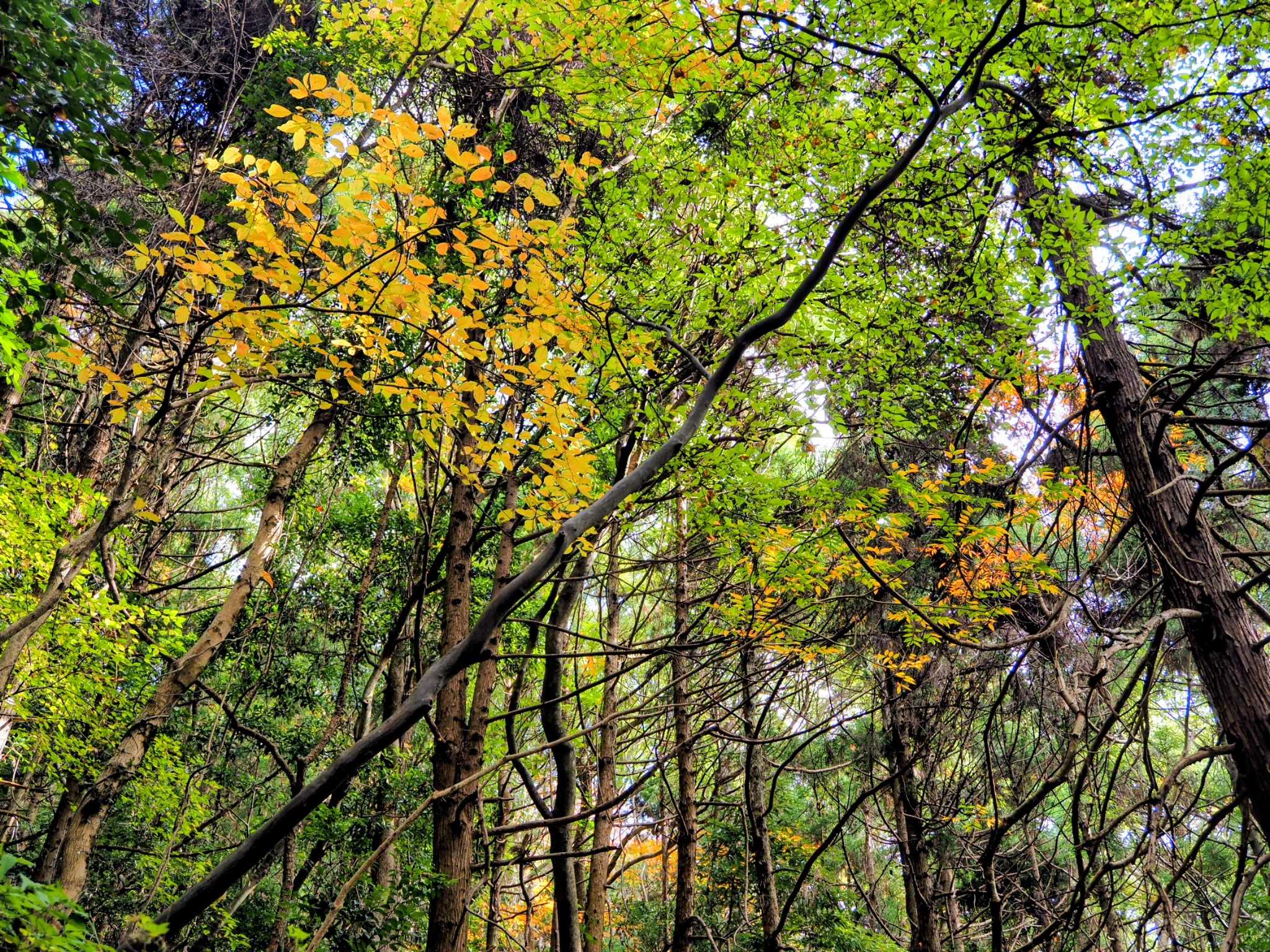 この山は常緑樹が多いので、紅葉は期待できないが、