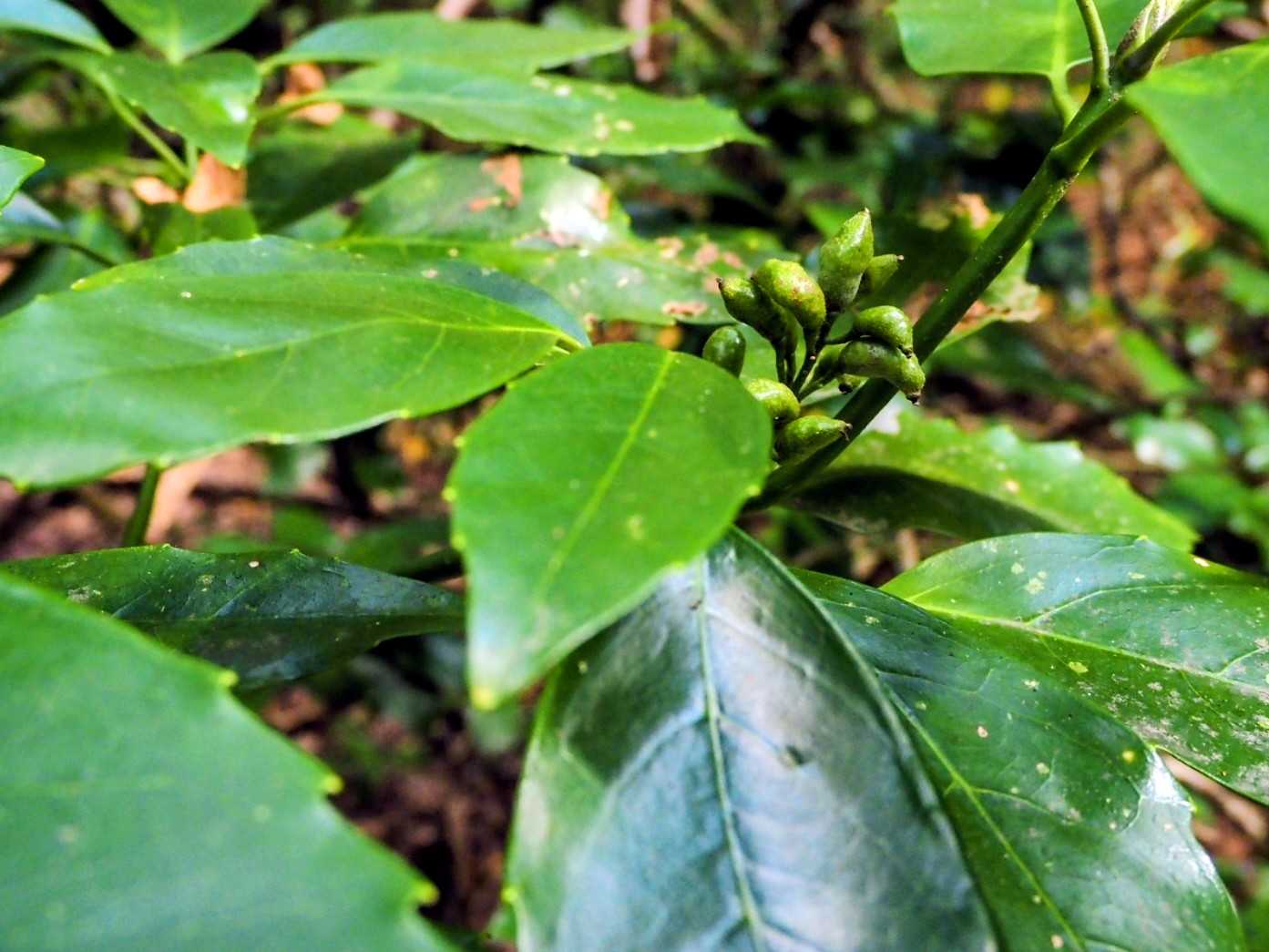 青木の果実 アオキ科アオキ属 果実は少なくまだ青い。