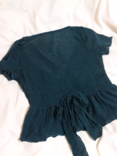 深緑でとても大人綺麗な色です。後ろにリボンが付いてて可愛いです。
