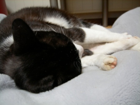きいちゃんは、毎日外に遊びにいきます。遊びに行くのはいいんだけど・・・どこで、傷をつくってくるのか 気が付くと傷ができてる同居ネコにつけられたかもしれないが、あまり心配させないでください。 遊び疲れて寝てるし 肉球がぁ~
