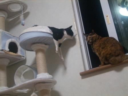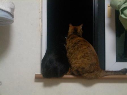 昨日の続き仲良く並んで外をみてますね~目を放した隙にチェリーがベットに移動~やったぜ!お気に入りの場所ゲット!キイちゃんは外に夢中