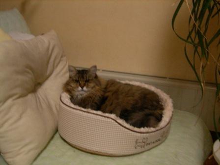 モコにも小さいサイズのを買ってきたんです~お気に入り~ぴったりだったようでくつろいでま~す! 部屋に遊びにきて大きいほうの居心地も確認してます~。 まったりしてますね~、モコちゃん良かったね~