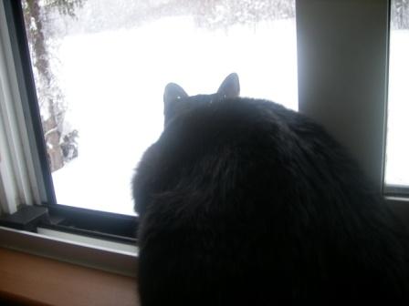 雪の降った日、キイちゃんは相変わらず「窓を開けて」と訴えてお願いしてきたので開けたげましたとても真剣にみてます、名前呼んでも返事は返ってこなかったねぇ、雪って美味しいの?