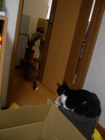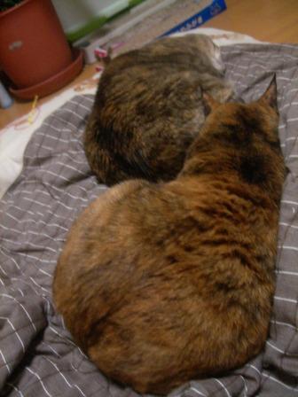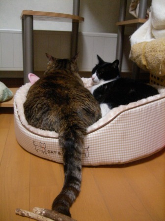チェリーとロンがお尻合わせしてた珍しいね、めったいないので記念に撮りましたカメラを向けると不機嫌になるチェリー。