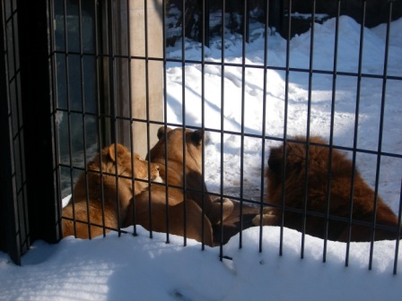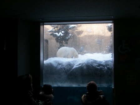 ほっきょく熊です、さすがにホッキョクグマだけあって元気に遊んでました。雪を食べてました、喉が渇いてたのかな?右のクマの行動が可愛くて~上のほうから腹這いになって到着~こちらのクマは寝てました喪中です、ハッピーは一番近くでみれたクマでした、柵のすぐ側で行ったり来たりしてたんです。お亡くなりになってすごく残念です。