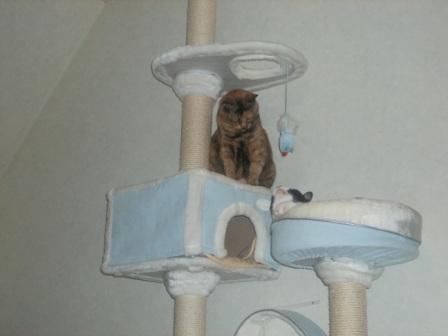 キイちゃんがキャットタワーに上ってました何をするのかなぁ~しっかりとみていてくれよ!とりゃ~えいっ!ガブッチェリーはしっかりとみていました