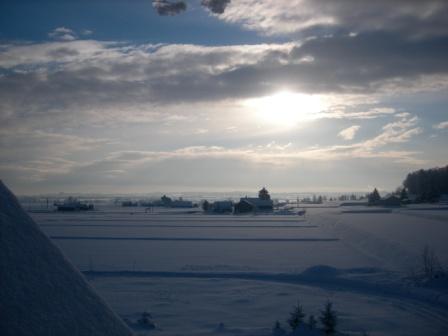 今日の朝は天気がいいです でもこれから雪が降るんですね~今週の天気は雪 ~天窓からの風景です、雲がなければ遠くに大雪山がみえたんですけどね。お気に入りの場所で外の風景をみてます何をみてるんでしょうか?