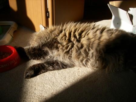 今日は暖かな日でした、まあ、お腹と背中にカイロ貼ってるから寒くはなかったけどね。カイロ貼ってるとポカポカと暖かくってさ、もう手放せないわ、冷え性にはカイロが一番かも~!君達はカイロ必要ないわねくつろいでるキイちゃんです。お休み中のチェリー。いつのまにか入ってるロンでした。(でかい)そしていつのまにかここで寝てるロンなのでした。
