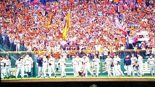 今日は、4人で生観戦 巨人レフト応援席から、、、 チームの対戦成績から 3年は 生観戦を避けていたが 広島戦は昨年唯一の勝利を、 勝利をしている (当選したチケットで) 連敗していたこともあり 原監督1000勝まで マジック1で迎えた試合 しかも、広島は初物を苦手としている 外国人投手 初回からチャンスをつくり 先制点 満塁場面が、三回も なんとか、なんとか 岡本和真のヒット打点 若林選手の本塁打 残塁がありながらも 7回まではいい感じで 黙らせておきたかったのだが 100球越えていた 山口投手が連打と本塁打で たちまち2点差に 満塁で点をとれるときには とらなきゃね そもそも、広島の連勝は 巨人が逆転負けしたところと マツダスタジアムでの3連敗からですから 再びあるなら3連勝という 仕返しをしたいのだ 前回は交代をして→中継ぎが打たれ 山口投手の勝ちが消えて 今回は続投して ランナーいなくなり 中川投手へ交代 イケイケを止められてよかったよ 油断大敵ですからね 原監督 1000勝達成 おめでとう🎶✨😆✨🎶 しかしレフトスタンドからは 選手の裏側ですし、 画面に映らなかったから グランドで選手と一緒に 1000勝祝いのばんざーい三唱 さあ、一緒に ばんざーい ばんざーい ばんざーい 絶対勝ち越しだぞ