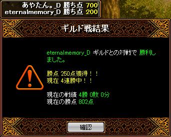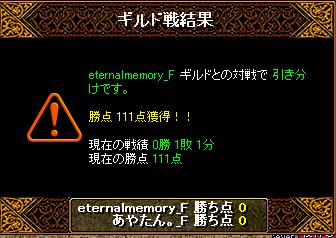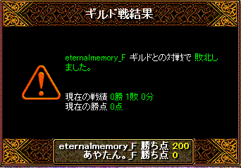 9月4日vsサルビアさん 場所は20:08分ナラダ二つ丘に先入れこちら集まりはbis1wiz1剣士2霊術1天使1姫1武道1の8名お相手もこちらと同等ほど 結果は。内容的には、相手を大きく崩すことは出来なかったんですが全体で少しずつ倒すことが出来たという感じでしたGv後の話題的には、「火力いたかったww」とか、「MMMないのに倒せなかったってどうゆーこと」とか「呪いかかった人がいた」とかですね それとKO槍さんのKO率とか・・・不思議な強さと潜在能力を感じました9月9日vs翠色の霹靂さん、場所は22:32分2粒の涙こちら集まりはbis1wiz1剣士1戦士1アチャ1姫1天使1霊術1ネク魔1の9名お相手も同等の人数?結果は!今日は久々の知識陣出陣!点差はこれですが、比較的耐えられてた気がします 大きく崩すことが出来た時の点数が大きかったという感じですね。でも見た限りではやはり、bis様が相当辛かったようです・・・ミラ反射含めた知識ダメに耐えれない時のGvってのはbisとしてはかなり辛いものがありますよねー;経験上。こちらの1死は、RS復帰したてで装備ほぼないやわやわさんが死んでももうたーって感じでした さすがにやわい!!が烈火頑張ってくれたありがとう対戦楽しかったです!俺は、立ち回り意識しないとだめっぽいな~。少し間隔があいてしまいましたが、以上2戦でした!!1Gvごとに装備を強化していく今回は、夜明けの瞳Nxを4億で入手→ワームからの脱出速度あげあげ↑にて完了おやすみ!