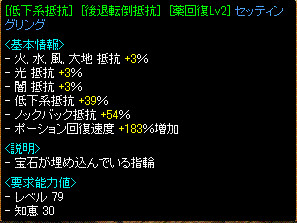 6月3日 場所は9:50分岩の谷 禁止は5つ+烈火1名までにて行いました 結果は!勝ちました 前回と比べると、こちらの人数が豊富だったのが勝因かも こちらbis2wiz1剣士2アチャ2霊術1天使1武道2ネク魔1 12名 お相手はbis1wiz3剣士2ネク魔1あとはわからないbis目線で見ていない・・・bis1だったのも大きな要因だったかもしれない最初は1得点を得てから、その後こちらの火力に耐え切れない方が多く倒せたって感じでした反省点としては、まぁ個人的に・・・ですね Gv開始前にフルヒ飲み終わる予定の部分が全然間に合ってなかったり、来るの遅くなりすぎたり・・・そんなんだから、Gv中に何か指示出したくても躊躇してしまう。・゚・(ノ∀`)・゚・。今日は禅語晒ししたいと思います~注目すべき点は、やはり薬状態フリーズ抵抗指ですかね 友人のアイディアをもらい、かつ露天で見つけた素材を再構成これにより大幅に装備の自由度と欠点のカバーが出来るようになりました。あとは、2OPものの棍棒と盾が新規参入してきましたが、盾はふつう。棍棒は、全異常抵抗が活用出来てる装備になってないので、なかなか他BISとの差別化が出来る要素にはなってないかなー。スピコマは、14億相場だった時は手は出す気しなかったのが10億まで下がり、手を出せた品 これはまぁ単純なバックホーンのあるかなしかで持たれるか分かれる品ですね(・ω・)回避・移動・抵抗色々試しましたが、これがほんのちょっと万能と言えると思いますこれではまだ単純に属性抵抗に不安があり。ミラーあり前提で考えてたあの頃は楽だった味方が強いのでシビアな場面は最近ありませんが、もっと精進していきたいと思います(・ω・)ゞ
