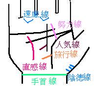 お早うございます。手相太郎へご訪問いただき有難うございます。昨日はブログを休んでしまいましたが(夏ばて)、今日は元気に手相の複線を紹介します。遠慮線中指と薬指の下に出来るV字のような線は、自分に向いてきたチャンスにまるで遠慮をすることが有るのです。自分には無理、今回は遠慮しておくなど、チャンスを見過ごしてしまうことが有るのです。性格、感情が強く影響していることが考えられます。努力線努力家、日々コツコツ努力をしている方に現れます。努力線が明確な方は少なくなりましたが、貴重な線の一つです。人気線人気商売、芸能人、お客様商売など人の人気に関係する方に必要な一線です。人気の大きさと線の長さは比例し、人気が多いほど線の数は増えて行きます。人気商売には必要な一線です。旅行線生まれ故郷を離れて成功をする方や親元を離れて成功する方や遠距離恋愛や遠方へ嫁ぐなど生まれ故郷を離れて成功する方に現れる一線です。陰徳線影で徳を積むことで、自分の人生に良い影響が有ることが考えられます。自分のために影で徳を積むことは、人目に触れていなくても、今後の人生の中で必ず良かったと思える時が訪れるはずです。手首線生命線と同じ意味を持ち、自分の健康状態や自分の心の状態などを意味します。水平で真っ直ぐの線が良いと考えます。直感線私は直感線を第二の頭脳線と考えています。鋭い判断力、鋭い洞察力を持つ方に現れます。もし女性に直感線が有る場合、男性の浮気を察する力は非常に強いことが考えられます。今日は手相を観るときに大事な複線を紹介しましたが、まだまだ紹介しきれない線は沢山有ります。毎日のブログの中で紹介していきたいと考えています。自分の手相の意味を知ることには少しの勇気が必要です。その少しの勇気が自分が自覚出来ないでいる能力を発見することに繋がると私は考えています。