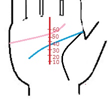 手相の仕事線(仕事運)に興味を持っていただき、手相太郎のブログへご訪問いただき有難うございます。手相太郎のブログ本体には、1,000以上の手相記事を紹介しています。手相太郎と検索し、ソネットブログの手相太郎がブログ本体です。仕事から結婚問題、家庭問題など詳しく説明しています。 仕事運の見方(仕事のめぐり)を手相から考え判断するブログです。 手相の中で仕事線とは、単独で存在するものではないと私は考えます。今から仕事の適正に関する部分から経済的なことまで詳しく説明いたします。この説明の中では頭脳線手相(知能線手相)の見方を含みます。 先ず、自分は文系なのか?理系なのか?を知らないで仕事をしている方、仕事を選ぶ方が殆どです。 学歴が文系だから自分は文系、学歴が理系だから自分は理系と思い込んでいる方が殆どでしょう。人の生まれながらに持つ能力とは遺伝的なことが殆どで、文系と理系では考え方や判断方法など、縦と横ほど違います。 今からそのことを詳しく説明します。 【1】文系頭脳線、知能線の見方(文系仕事運) 青色で描いた部分が自分の脳の方向性だと考えてください。下向きになる方向性は文系の大きな特徴で生命線と重なりを持ちます。考え方は積み重ねや経験を得意とする考え方が出来、暗記、語学対応、人間関係、同じ仕事の継続、縦に積み重ねることを得意とする能力です。頭脳線(知能線)が短いか、長いか、太いか、細いかよりも、どのように出てるかが一番のポイントとなります。 物事を評価するときには、加算方(10+15+20)を無意識に使い、集団行動を好み、集団で居ると安心出来、人並みでありたいと常に無意識に縦の考え方をしています。 これが仕事の適正に関係し、組織内や会社内での仕事に適正を持ち、公務員、会社員、福祉関係、教育関係、サービス業など、幅広く日本人が好む仕事に適正を持つことになります。 【2】文系の特殊能力頭脳線、知能線の見方(文系特殊能力仕事運) 文系の特殊能力頭脳線(知能線)とは、下向きに進み更に生命線と離れている状態を持ちます。先ほどの文系と基本的な縦の考え方は同じですが、団体行動を好まず、自分の考え方と行動パターンを持つことから、仕事の適正が違います。同じ文系の職業でも独立の力を持ち、単独で仕事をすることを得意とすることから、通訳、デザイナー、作家、編集者、放送作家、陶芸家など自分単独でも出来る仕事に適正を持つことになります。 【3】理系頭脳線、知能線の見方(理系仕事運) 青色で描いた部分が自分の脳の方向性とお考えください。水平方向に向くことが理系の最大の特徴で、生命線とは重なりを持ちます。横への考え方を得意とする能力です。既存の考え方に捕われることなく横への考え方の展開が出来ることが最大の特徴と言えます。また専門知識や資格にも対応できる能力を持ち、このことが仕事の適正に大きく関係しています。医師、弁護士、税理士、などの士業、IT関係、研究開発関係、建築家などの仕事に適正を持ちます。文系と反する部分は、積み重ねをする人間関係を苦手としますので、このような職業の方が人当たりが悪く見えるのも納得できます。 理系の方は物事を評価するときには無意識に減点法を使っています。(自分の判断基準を100として、100-10-15-20) このタイプの方は、組織内では御意と言える方です。 【4】理系特殊能力頭脳線、知能線の見方(理系特殊能力仕事運) 理系特殊能力頭脳線(知能線)は生命線とは離れていて水平方向へと進む頭脳線(知能線)です。先ず、このようなタイプの方は、組織内では御意とは言えないタイプですので、将来的には独立したほうが良いです。理系の方と基本的な考え方は同じですが、組織内を苦手とし、独自の考え方や行動パターンを持ちます。将来的には独立できる仕事を選択したほうが良いです。 仕事の選択を間違えている方は、どうしても自分の住む世界が違うために、人間関係での苦労、考え方や判断方法の違い、様々なトラブルの原因を持つことになります。 また、左手では理系を持ち右手では文系を持つ方、左手に文系の特殊能力を持ち右手では理系特殊能力を持つ方が居ますが、これから説明する経済的な部分がどう作用するかで、左の能力を生かした方が良いのか?右手の能力を生かしたほうが良いのか?決まります。 【5】仕事の過去~現在~未来が出る部分の見方(仕事運、仕事の運び方が出る場所) 左手の人差し指と中指の中間の真下あたりに出てきます。ここには、人の仕事への関わり方、仕事が上手く行っているか、上手く行っていないか、仕事への関わり方がハッキリ出てきます。 【6】仕事の過去~現在~未来への進み方の見方(仕事運、仕事の運び方) 1.太く垂直にハッキリ出ている方は、過去~現在~未来まで仕事の安定があり既に生涯の仕事をしている方です。仕事との関わり方と自分の能力を正しく仕事に向けている方です。 2.縦に段々とずれながら途切れ途切れに出てくるのは