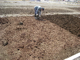 ↓昨日、我が家ベランダ前の畑にやっと手を付け始めた夫。彼の実家では庭で野菜を作っていて、生まれた時から夏は家の野菜を食べるのが当たり前に育ったらしい・・・小さいときから手伝っていたせいか?畑をおこす姿もなかなか様になっていました(*^_^*)↑休憩中(らしい)右側半分ちかくできてきたかな。夕方までには全部終わって、石灰をまいて暗くなる前に無事修了。半分は、野菜(じゃがいも、ミニトマト、小松菜など)残り半分は、ハーブと花畑になる予定。ちなみに、私の担当はハーブ(おもにバジル、ルッコラ)のみ。あとは、頑張れダンナ!!あ~たのしみたのしみ☆