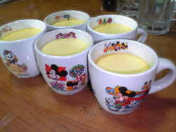 私は「料理は出来ません。」と人前では言っていますが、料理が「出来ない」というより、「やったことがない」という方が正しいです。それでも大学生活4分の2は自炊していましたので、それなりに出来はしますが、基本が面倒くさがりで、自分だけが食べられればいいし…と、たいした料理はせずに過ごしました。今は実家住まいなことと、仕事が不定期なこともあり、自分で作る必要がなかったり、作る時間がなかったりな状態で、料理の腕があがることはありません(-_-;)一応、ちゃんと本は読めるので、料理の本など見れば出来ないことはないハズと思ってはおります(ただ、料理用語は全然知りませんが)。そんなお料理事情をかかえたワタクシですが、食べることは大好きです。辛いものも甘いものも好きです。甘いものの中ではプリンが結構好きで、なめらかなものも、固めなものも焼きもみんな好きです。なめらか系のプリンはPastelというお店のプリンが好きです。前置きが長かったですが、ここからが本題です(笑)。そんなPastelのプリンのレシピが公開されたと聞いて、ネットで調べてみたところ、見つけることが出来ました。見てみたら、難しい料理用語などがまったくなく、私でも作れそう…ということで、今日はそれを作ってみることにしました。まずはカラメルから。しかし、横で見ていた母親が急に口を出し、手を出し(私からヘラを奪いました(`_´))…カラメルは見事失敗。そんなわけで、カラメルなしのプリンを作ることにしました。もう絶対母親に手出しはさせませんでした。そして、無事に出来上がりました。試食の結果は、まぁまぁ…ということで。なんだか茶わん蒸し風味なプリンでした(^^;)ただ、父親は「お前が前に買ってきたプリンに味が似てるな。」と言っていました☆また、時間があったら挑戦してみようと思います(^^)