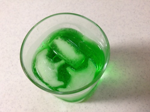 やっと晴れました!!洗濯をガッツリし、厚手の布団も干して仕舞ったりと、衣替えです。キッチンを片付けていてメロンシロップを発見しました。こんなに暑い時には、、、とソーダ水を購入してきて、メロンソーダを作りました。氷は以前より、エイリアンの型があるので、それで作り置きしているのですが、それを入れてみたところ、かわいいエイリアンメロンソーダが出来上がりました!!氷自体にメロンシロップが入っていれば、薄まらず、もっと良かったのでは??という意見もありますが、まずは見た目に満足です(^^)