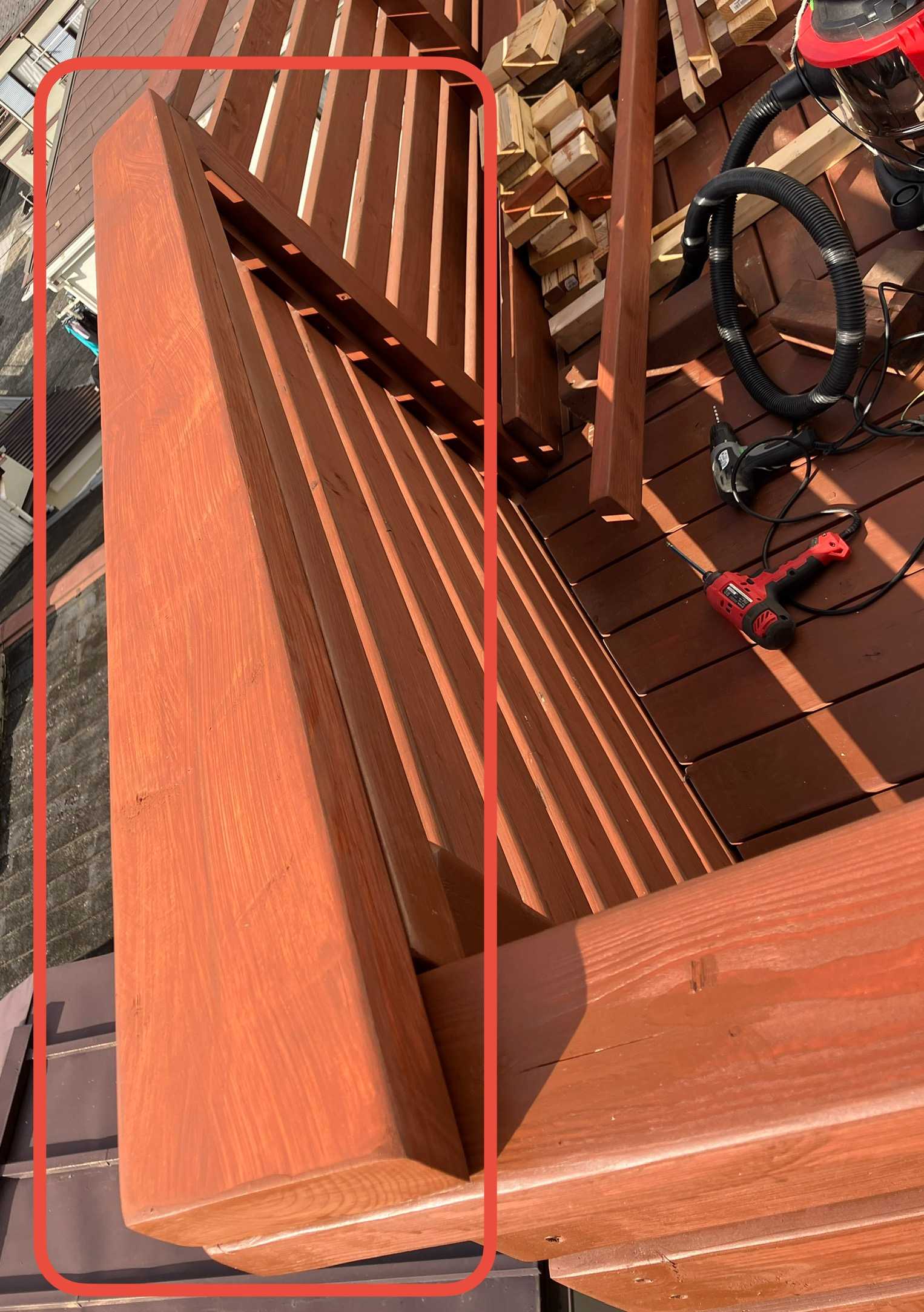 先日購入して来た2x6 材にステイン2度塗りして、張り出し部のフェンスの天板を設置した。…