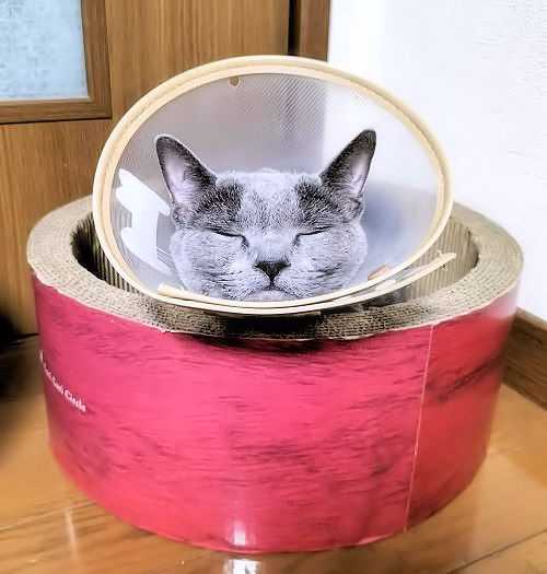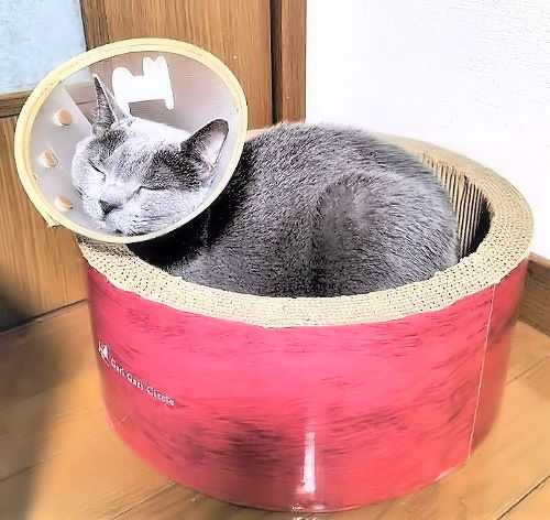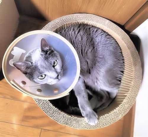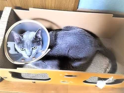 朝は、いつもどおりだった。まずは、ちゅ~る水。そしてドライを15g入れて、私はお昼前に出掛けた。15時半頃、仕事から帰って来ると、床に嘔吐の跡、2か所に。もう乾いているくらいの量。エリザベスカラーを綺麗にして、様子を見ていたけれど、特にぐったりもしていなかった。私はまた外出。18時頃帰って来ると、また嘔吐の跡。今度は、ほんの少し。エリザベスカラーも、汚れていなかった。毛玉を吐こうとしても出なくて、少し涎が出ちゃったって感じ。でも・・・夕方のちゅ~る水の時間なので、く~ちゃんが近付いて来て、私に訴える様な態度だったので、ちゅ~る水をあげた。あらっ? 食べなかった。ふと、ご飯の器を見ると、朝あげたドライフードが、そのまま残っている様な。なんか、おかしい。でも、動いてはいる。ドライフードを食べようと? 器の所までは行くけれど、やっぱり食べずに、離れて行く。4回も続けて、抱っこを要求。そのたびに、お外に連れて行ったり、窓からお外を見せたり。普段は1度で気が済んで、それ以上要求しないのに。ここで思った事。く~ちゃんが、熱い!抱っこしていて、いつもより体が熱い気がする。熱がある?何か食べないといけないかもと思い、固形物の入っていないどろどろ状のウエットフードを10gあげた。滅多にあげないけれど、いつもは食べる。匂いをかなり長く嗅いでいたけれど、やっぱり食べなかった。それでエリザベスカラーを外して、目の前に器を出したら、食べ始めて、完食。どう言う事?結局この日は、1日でドライフードを4gしか食べていなかった。他には、朝ちゅ~る水を一舐め。(←普段からこの量しかあげない)夜にウエットフード10gだけ。あきらかに、おかしい。そして、いつもいない場所にずっといる。以前日記に書いた、捨てようと思いながら捨てられない、壊れた爪とぎハウス。 こちらなぜか、入っている。一つだけ残っているぼんぼんで遊んだり。遊べるって事は、それ程体調悪くない?そして、ここで寝てしまった。隣には、ふかふかベッドが置いてあるのに。ご飯は食べないし、普段しない行動をするし(何回も抱っこをせがむ)、今まで使わなかったハウスに入ってるし。絶対に、おかしい!そうそう、嘔吐を2回もした。明日もご飯を食べなかったら、病院に連れて行った方がいいね。熱がある気がするし。 にほんブログ村 ↑クリックして応援して頂けたらうれしいです ↓ ロシアンブルーランキング