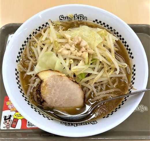スガキヤ スガキヤHPスガ・ジロー 別皿 にんにく付き(690円)+ 麺大盛(110円)Sくん、ラーメン食べ歩き。(10/15訪問)アピタ フードコート「スガキヤ」へ。 18:30 注文 18:36 受取食べたのは「スガ・ジロー 2025」。去年も販売していた、スガ・ジロー。Sくんは食べなかったのだけど、今年になって、再販されると、やたらとInstagramでも見る様になって、ついに行って来ました。二郎系って事で、お決まりの、横からも撮影。昨年、発売直後に売り切れが続出した幻のコラボラーメンと、HPにありますが、確かに、「去年は食べられなかったので・・・」と書いている人がたくさんありました。SNSでフォロワー10万人超えの人気ラーメン店「キブサチ」監修、スガキヤ流に食べやすくした二郎系ラーメンだそうです。スガキヤのラーメンを、その有名店が監修するとどうなるのか?と、興味津々だったそうですが、味は、スガキヤ!って感じがしたそう。スガキヤは、もうずっと食べていないけれど、そんな味のイメージだったと。商品説明では、通常のスガキヤラーメンのスープをベースに、特製のタレと背脂を加えていると。野菜は210gだそうだけど、二郎系のイメージより少なく見える。特製チャーシューも、通常の5倍のボリューム、って、通常はいったいどんなんだ?とまぁ、食べていない私が言うのもなんだけど、Sくんは、このお値段(大盛で800円)だから、それなりに美味しかったそうです。★★★☆☆(3点) 。 2025年ー82杯目
